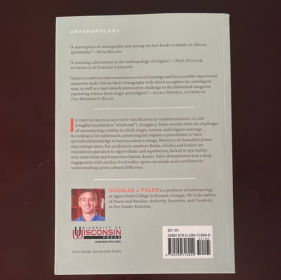 As New; In this investigation into the Beninese understanding of Aze (roughly translated as "witchcraft"), Falen wrestles with the challenges of encountering a reality in which magic, science, and religion converge. According to his informants, possessing aze requires a practitioner to have specialized knowledge to harness nature's energy. However, its boundless power may corrupt users. For residents in southern Benin, witches and healers are considered equivalent to supervillains and superheroes, locked in epic battles over malevolent and benevolent human desires. Falen demonstrates how a deep engagement with another lived reality opens our minds and contributes understanding across cultural differences.