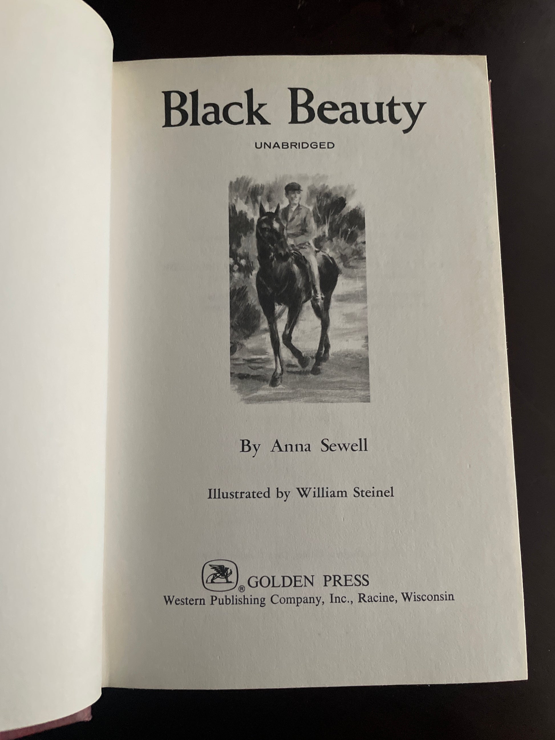 Clean, tight, unmarked; personal gift inscription on ffep; slight wear to upper spine extreme; spine has light wear; otherwise very bright - not faded; very minimal wear; Colour and b&w illustrations by William Steinel. Unabridged version of the classic children's book - Black Beauty - the story of a beautiful black horse.