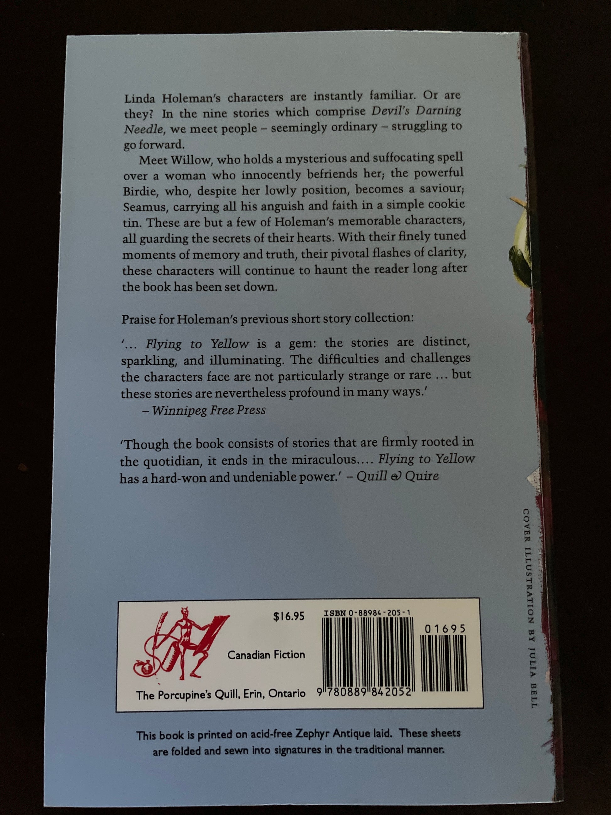 SIGNED BY LINDA HOLEMAN on title page; Clean, tight, unmarked; single light crease to spine; otherwise absolute minimal wear; Linda Holeman's characters are instantly familiar. Or are they? In the nine stories which comprise this book, we meet people - seemingly ordinary - struggling to go forward. Meet Willow, who holds a mysterious and suffocating spell over a woman who innocently befriends her; the powerful Birdie, who, despite her lowly position, becomes a saviour; Seamus, carrying all his anguish and faith in a simple cookie tin. These are but a few of Holeman's memorable characters, all guarding the secrets of their hearts. With their finely tuned moments of memory and truth, their pivotal flashes of clarity, these characters will continue to haunt the reader long after the book has been set down.
