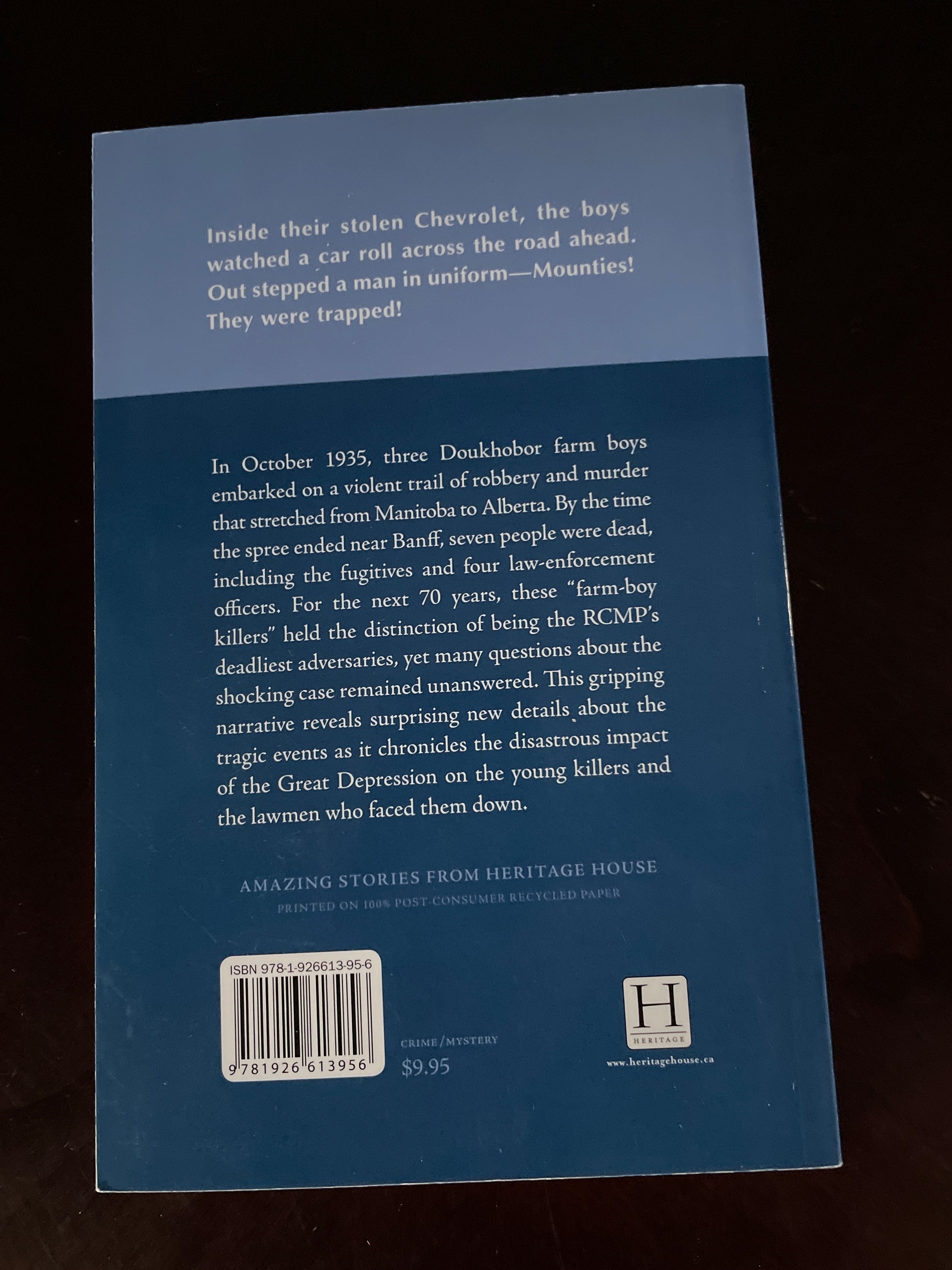 Clean, tight, unmarked; absolute minimal wear; appears unread; In October 1935, three Doukhobor farm boys embarked on a violent trail of robbery and murder that stretched from Manitoba to Alberta. By the time the spree ended near Banff, seven people were dead, including the fugitives and four law-enforcement officers. For the next 70 years, these "farm-boy killers" held the distinction of being the RCMP's deadliest adversaries, yet many questions about the shocking case remained unanswered. This gripping narrative reveals surprising new details about the tragic events as it chronicles the disastrous impact of the Great Depression on the young killers and the lawmen who faced them down.
