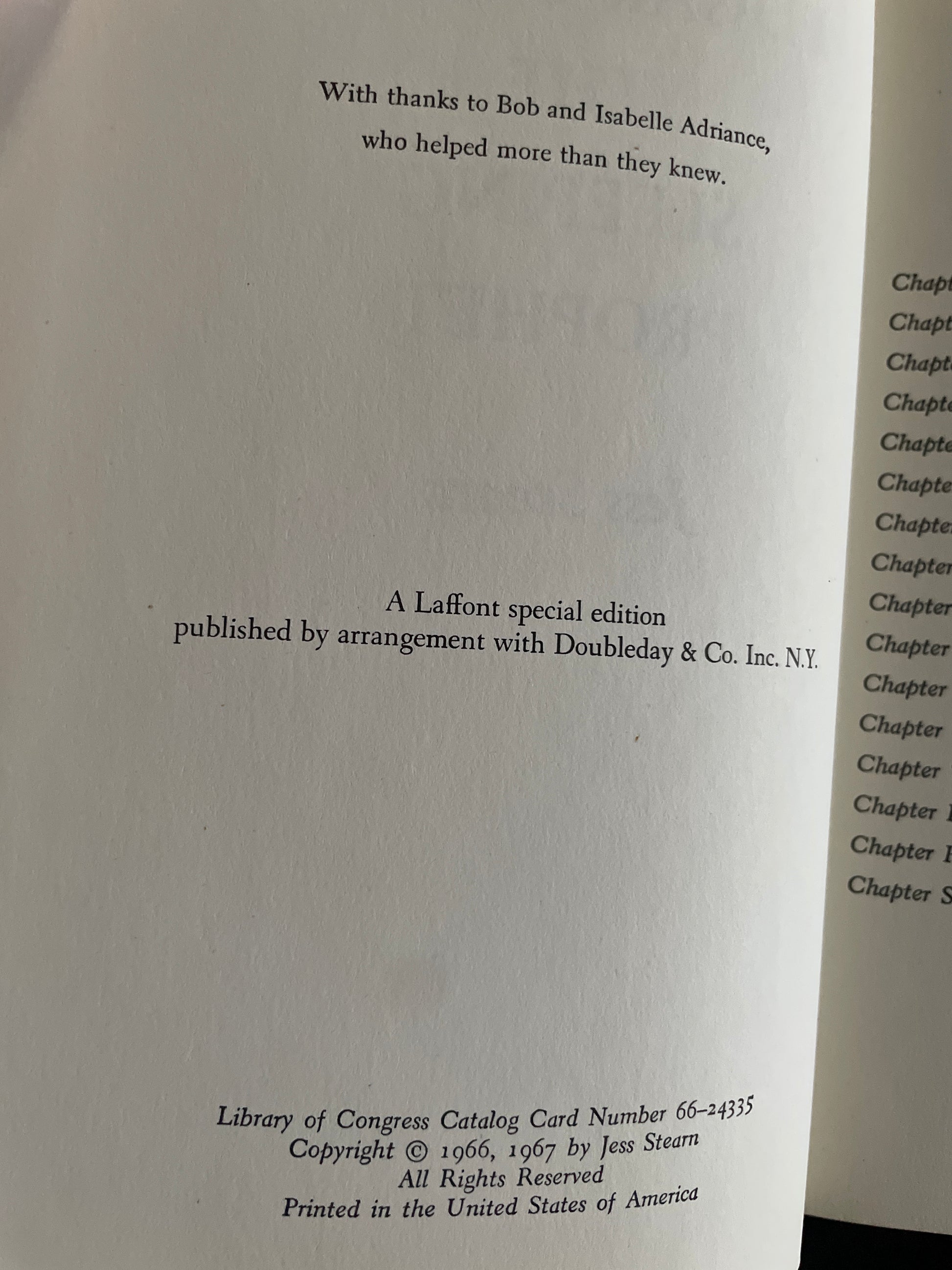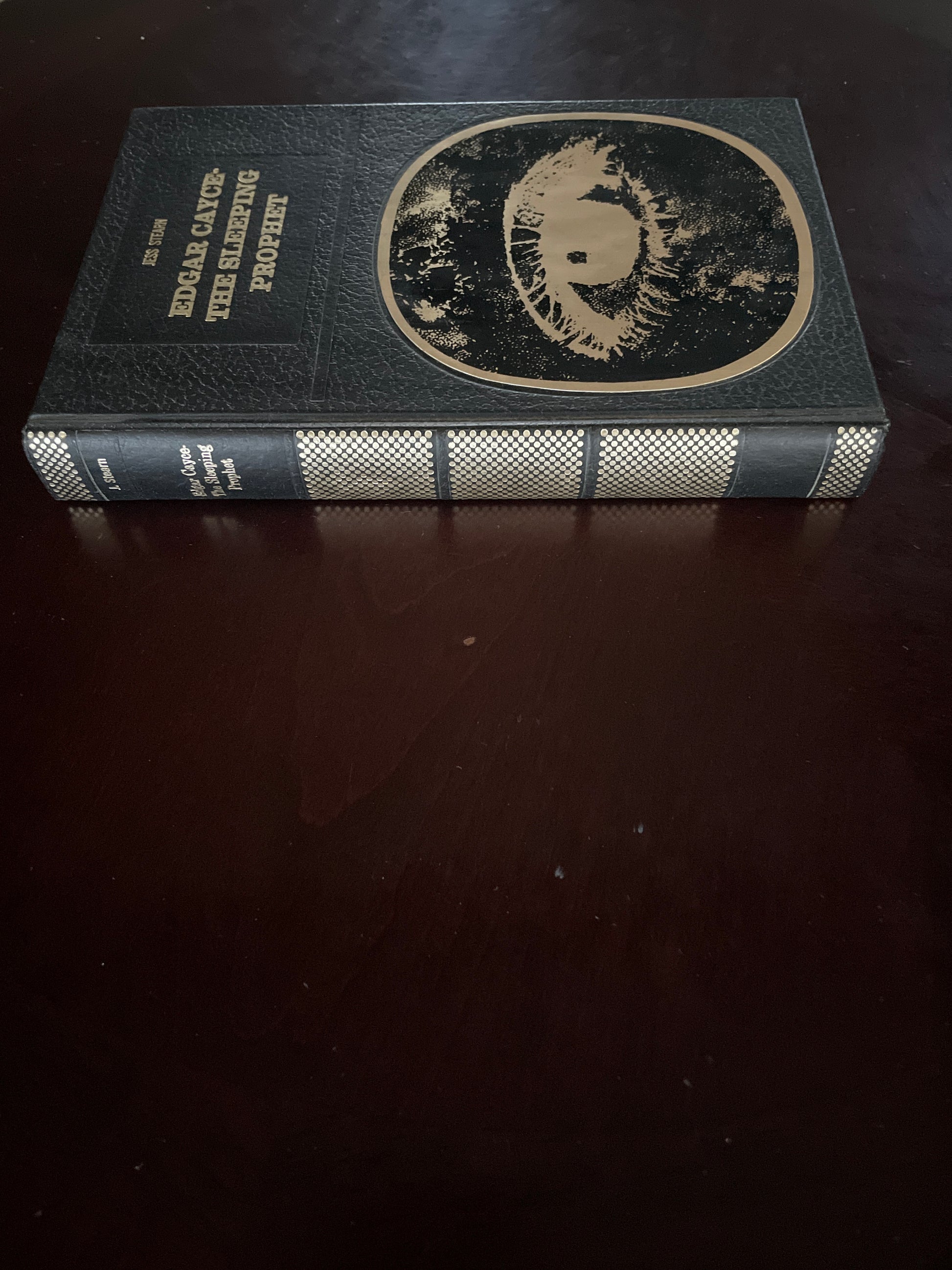 Black textured covers with gilt titles and design; gold and black metallic pastedown of a picture of an eye on the front of the book; red endpapers; clean, tight, unmarked; bright; no rubbing; very minimal wear; For more than forty years the "Sleeping Prophet" closed his eyes, entered an altered state of conciousness, and spoke to the very heart and spirit of mankind on subjects such as health, healing, dreams, meditation, and reincarnation. In this book, Stearn presents the extraordinary story of his life, his healing, his prophecies, and his powerful legacy.