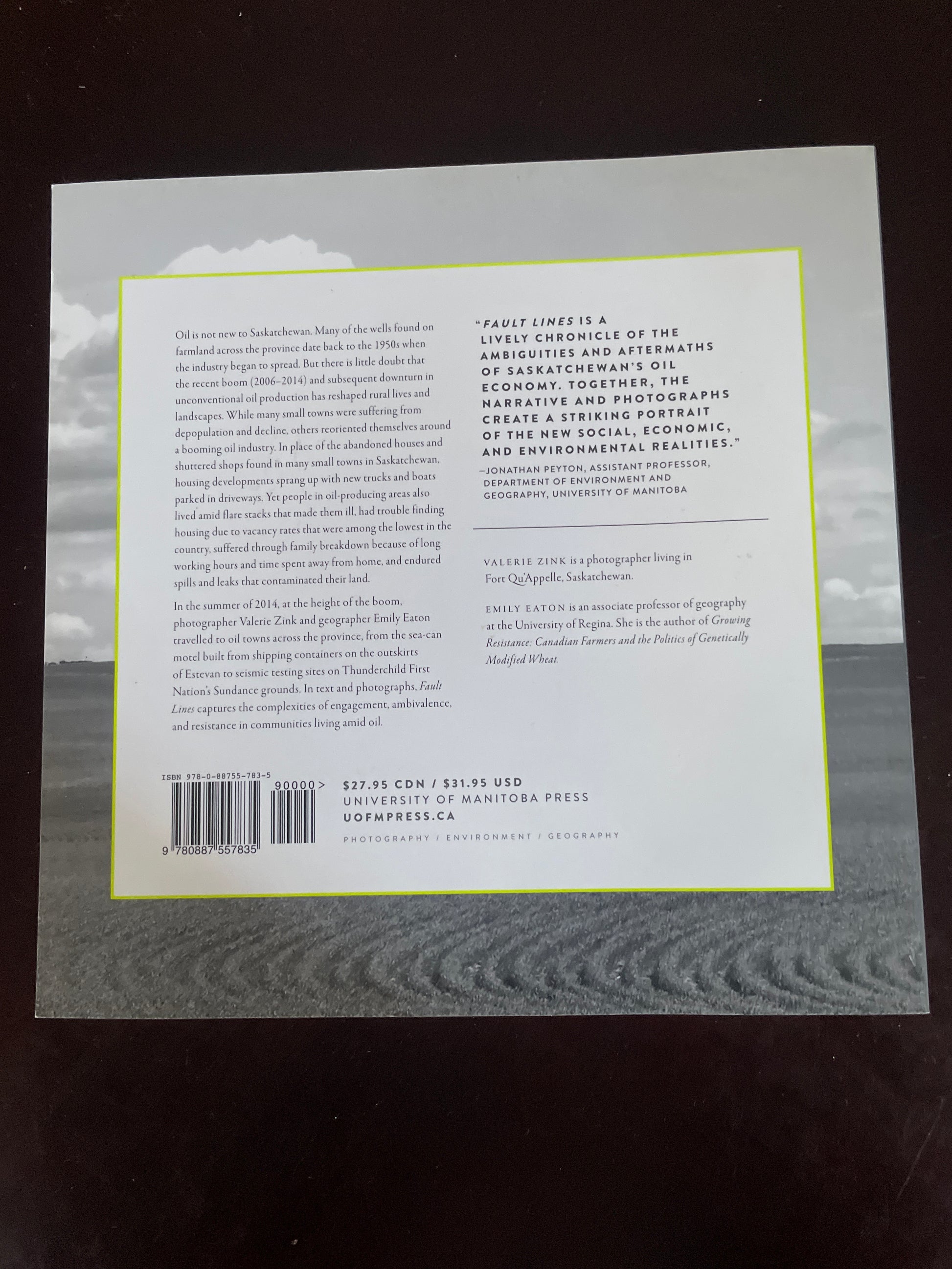 Clean, tight, unmarked; absolute minimal wear; appears unread; Oil is not new to Saskatchewan. Many of the wells found on farmland across the province date back to the 1950s when the industry began to spread. But there is little doubt that the recent boom (2006-2014) and subsequent downturn in unconventional oil production has reshaped rural lives and landscapes. In the summer of 2014, at the height of the boom, photographer Valerie Zink and geographer Emily Eaton travelled to oil towns across the province, from the sea-can motel built from shipping containers on the outskirts of Estevan to seismic testing sites on Thunderchild First Nation's grounds. In text and photographs, Fault Lines captures the complexities of engagement, ambivalence, and resistance in communities living amid oil.