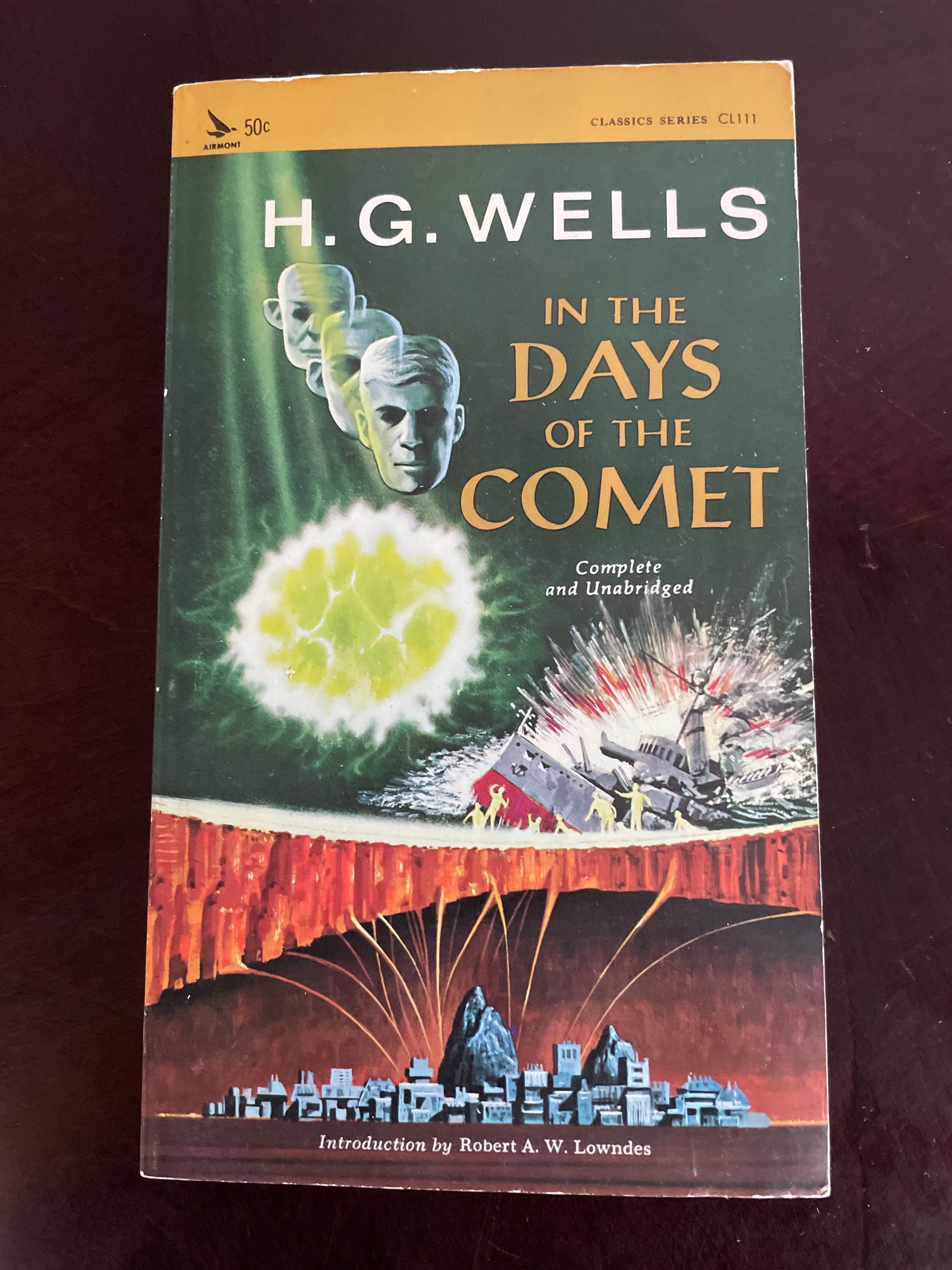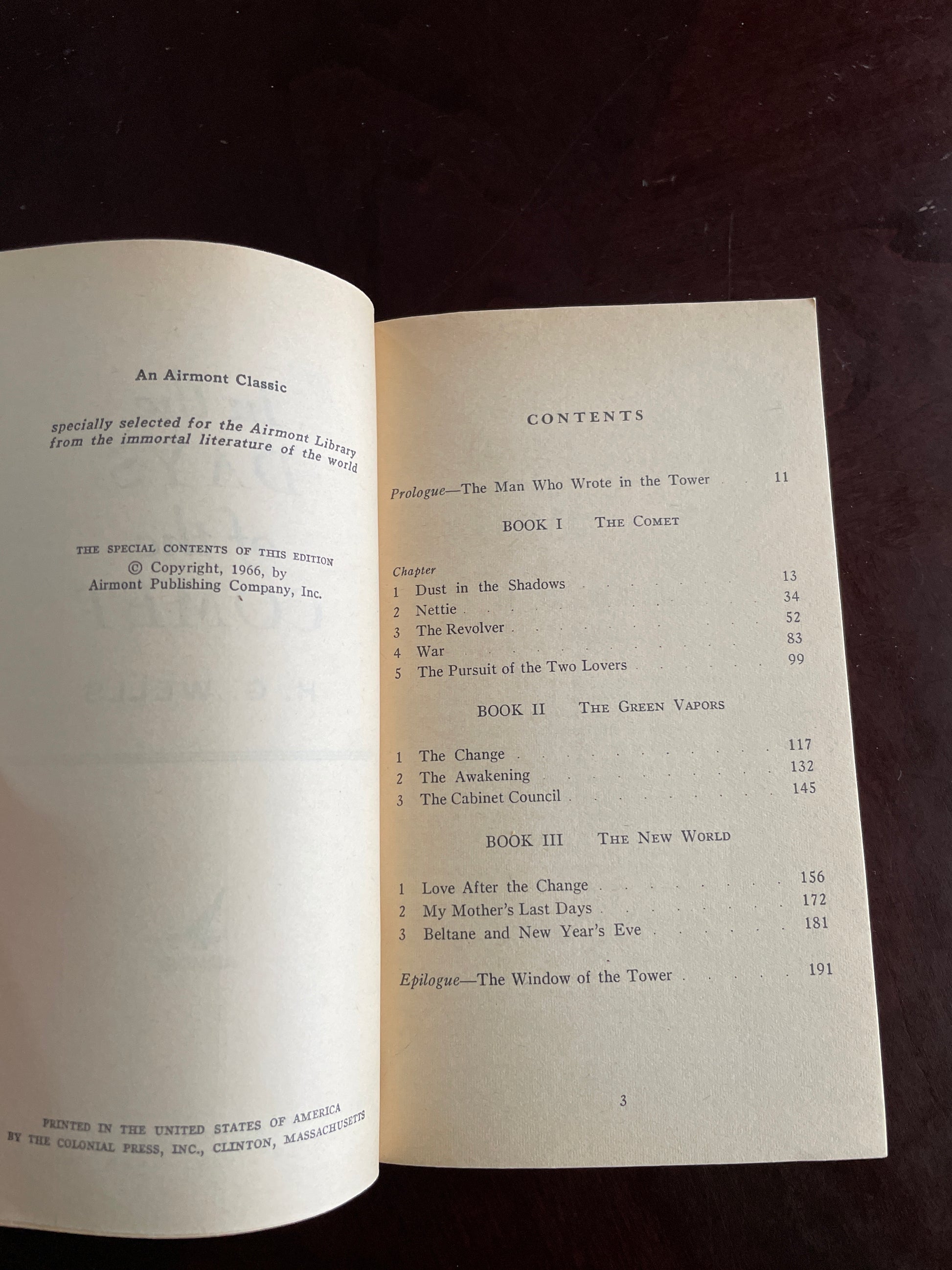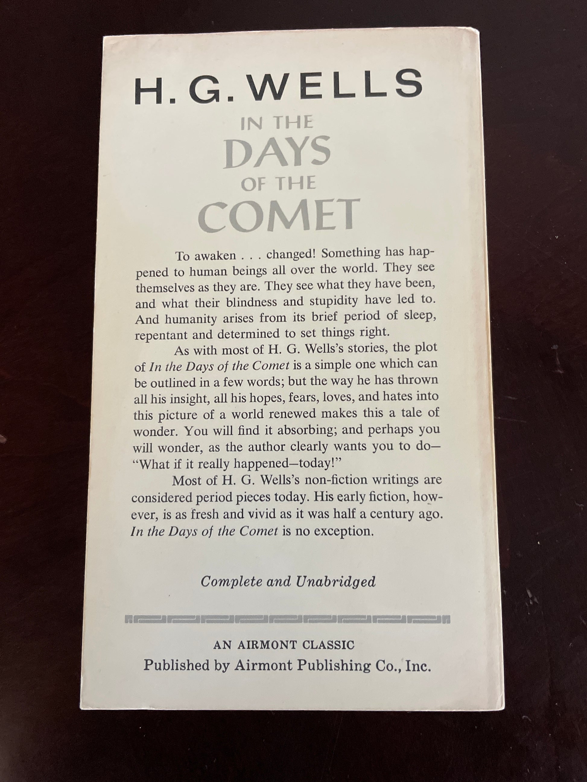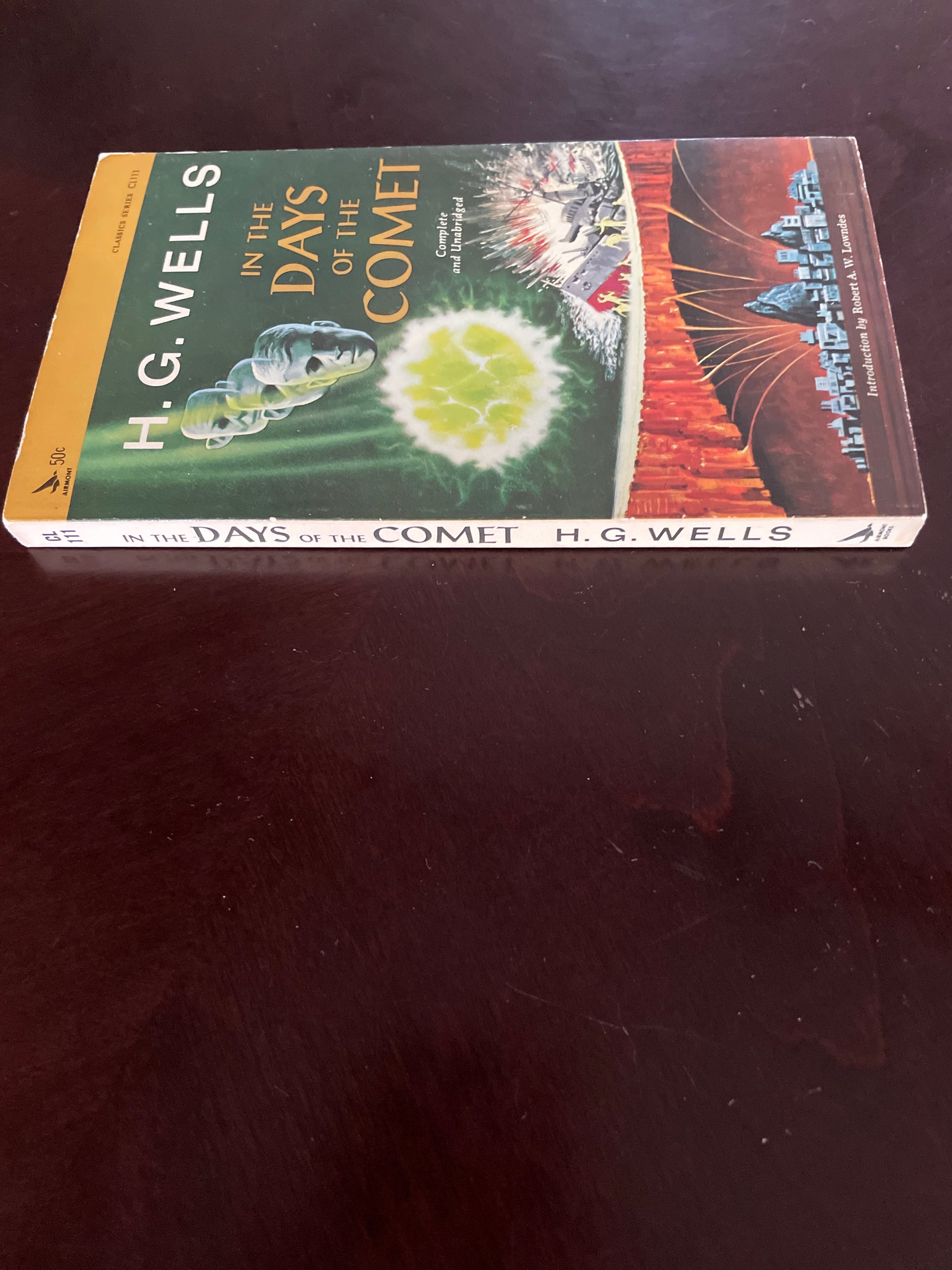 Clean, tight, unmarked; small area of price sticker ghost to front cover - does not effect the illustration; slightest of edge wear; lightly age tanned; otherwise absolute minimal wear; appears unread; picture on front cover of an exploding ship, a green mass, three faces of a man and an underground city; price on cover is 50¢. To awaken ... changed! Something has happened to human beings all over he world. They see themselves as they are. They see what they have been, and what their blindness and stupidity have led to. and humanity arises from its brief period of sleep, repentant and determined to set things right. As with most of H.G. Wells' stories, the plot of this book is a simple one which can be outlined in a few words; but the way he has thrown all his insight, all his hopes, fears, loves, and hates into this picture of a world renewed makes this a tale of wonder. You will find it absorbing; and perhaps you will wonder, as the author clearly wants you to do - "what if it really happened - today!"