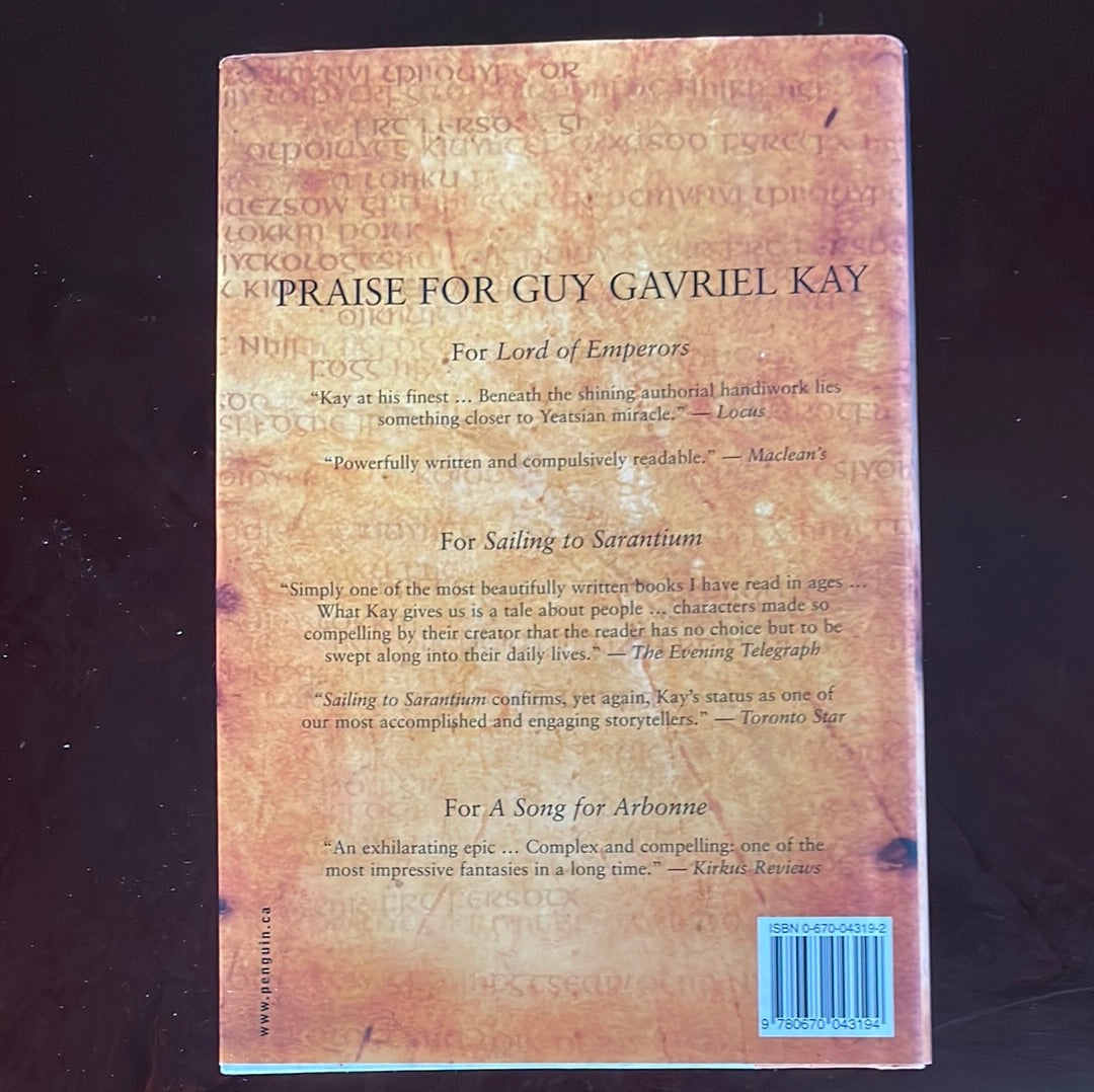 INSCRIPTION FROM GUY GAVRIEL KAY on title page; Clean, tight, unmarked; very light wear to edges of dust jacket and spine extremes; otherwise very minimal wear; Guy Gavriel Kay virtually invented a genre that, with consummate artistry, blends history and fantasy in some of literature's most acclaimed works of the fantastic. Now, the award-winning author turns his gaze, and his readers', to the Northlands. Leaving behind the decadent, sophisticated courts of his most recent works, he has shaped a memorable saga evoking the Celtic, Anglo-Saxon, and Norse cultures of a thousand years ago.