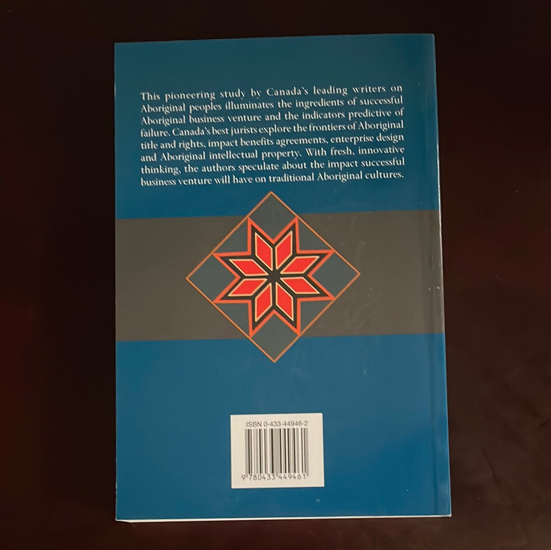 Clean, tight, unmarked; absolute minimal wear; appears unread; This pioneering study by Canada's leading writers on Aboriginal peoples illuminates the ingredients of successful Aboriginal business venture and the indicators predictive of failure. Canada's best jurist explore the frontiers of Aboriginal title and rights, impact benefits agreements, enterprise design and Aboriginal intellectual property. With fresh, innovative thinking, the authors speculate about the impact successful business venture will have on traditional Aboriginal cultures.