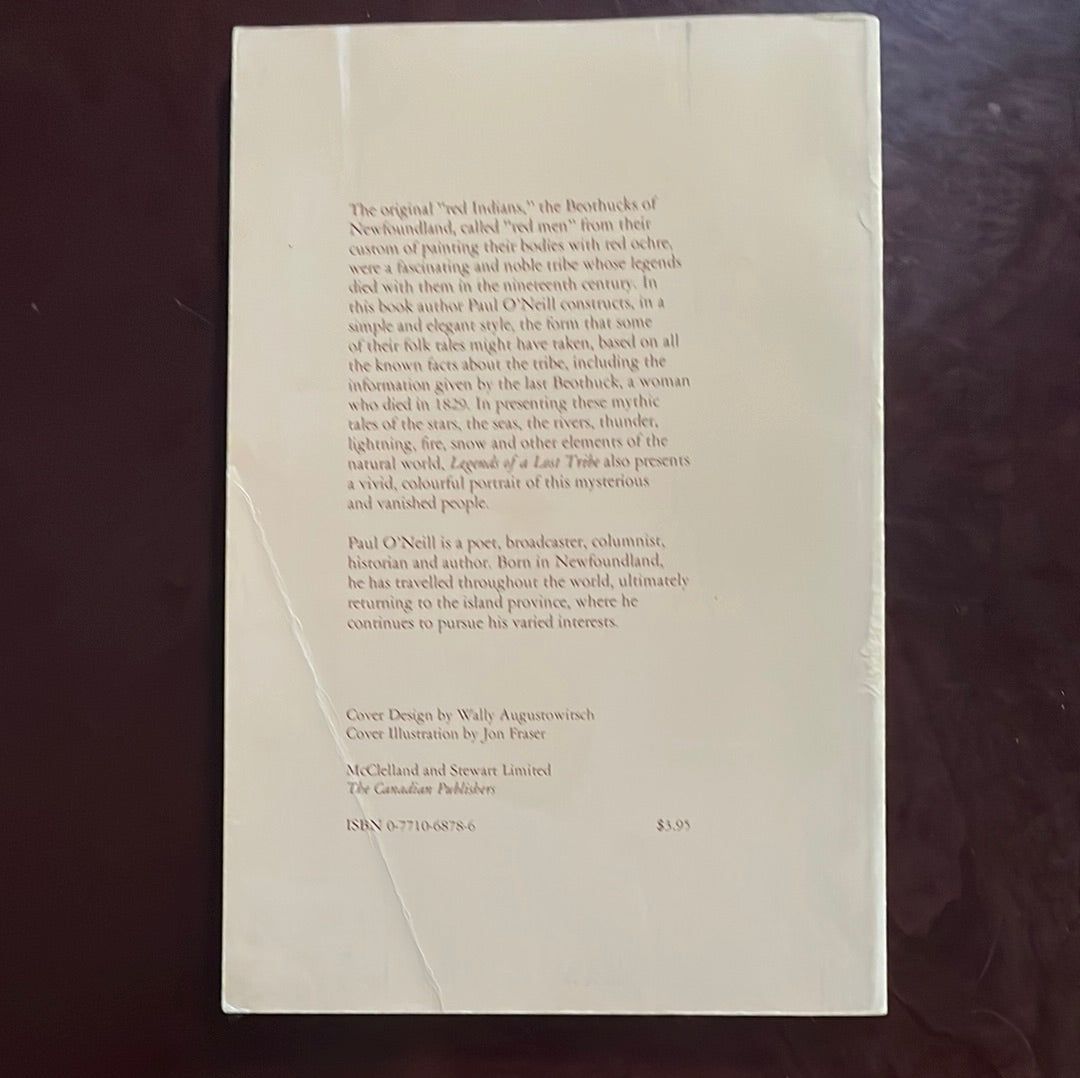 Clean, tight, unmarked; crease across inside lower back corner of cover; a few light scratches to covers; pen mark close to upper back upper edge; otherwise appears unread; The original "red Indians" the Beothucks of Newfoundland, called "red men" from their custom of painting their bodies with red ochre, were fascinating and noble tribe whose legends died with them in the 19th century. O'Neill constructs the form that some of their folk tales might have taken, based on all the known facts about the tribe, including the information given by the last Beothuck, a woman who died in 1829. In presenting these mythic tales of the stars, the seas, the rivers, thunder, lightning, fire, snow, and other elements of the natural world. A vivid, colourful portrait of this mysterious and vanished people.
