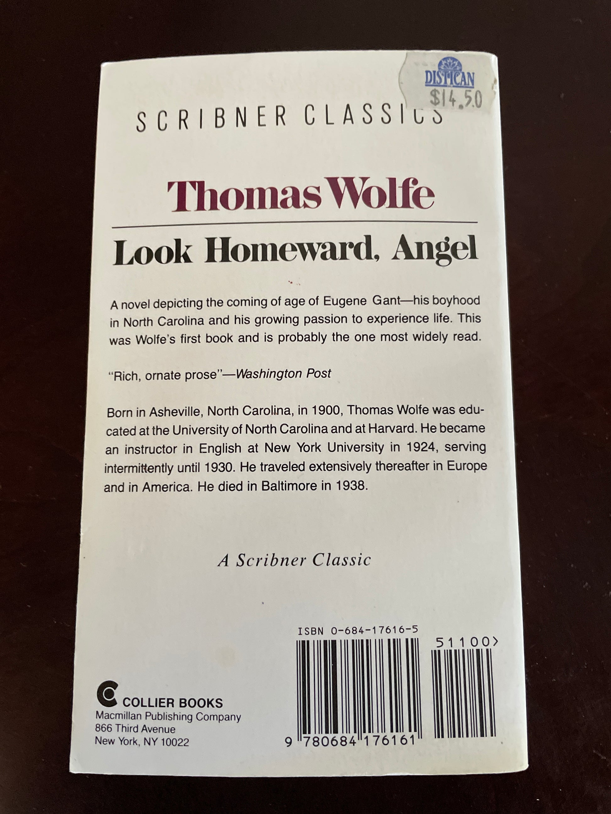 Clean, tight, unmarked; absolute minimal wear; appears unread; A novel depicting the coming of age Eugene Gant 0 his boyhood in North Carolina and his growing passion to experience life. This was Wolfe's first book and is probably the one most widely read.