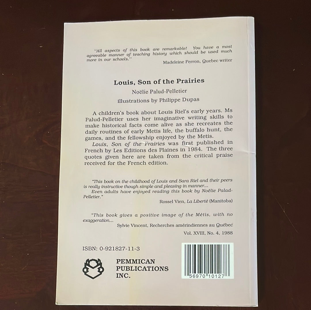 Clean, tight, unmarked; scratch to back cover; light crease to front cover near spine; otherwise very minimal wear; A children's book about Louis Riel's early years. Ms Palud-Pelletier uses her imaginative writing skills to make historical facts come alive as she recreates the daily routines of early Metis life, the buffalo hunt, the games, and the fellowship enjoyed by the Metis.