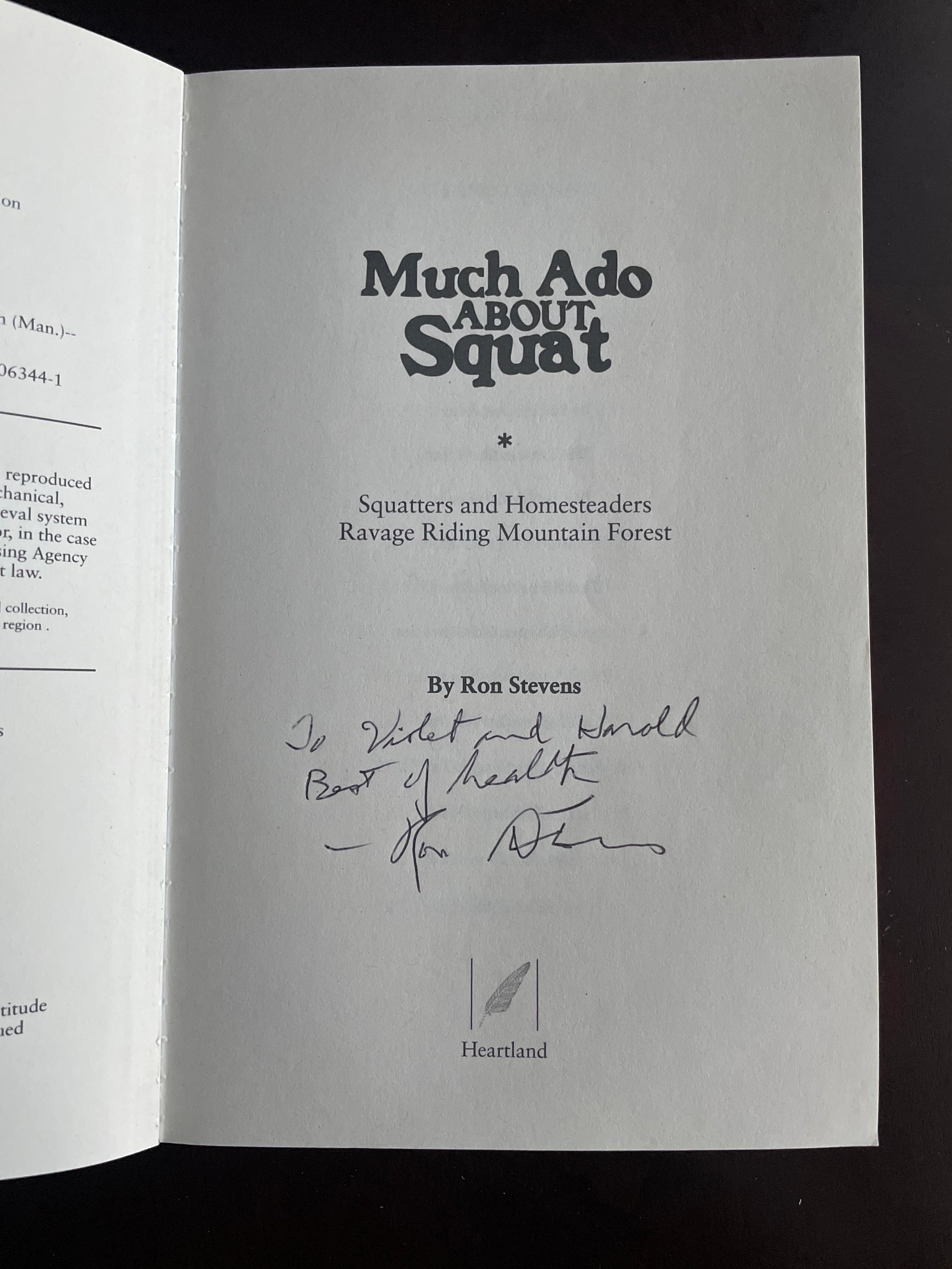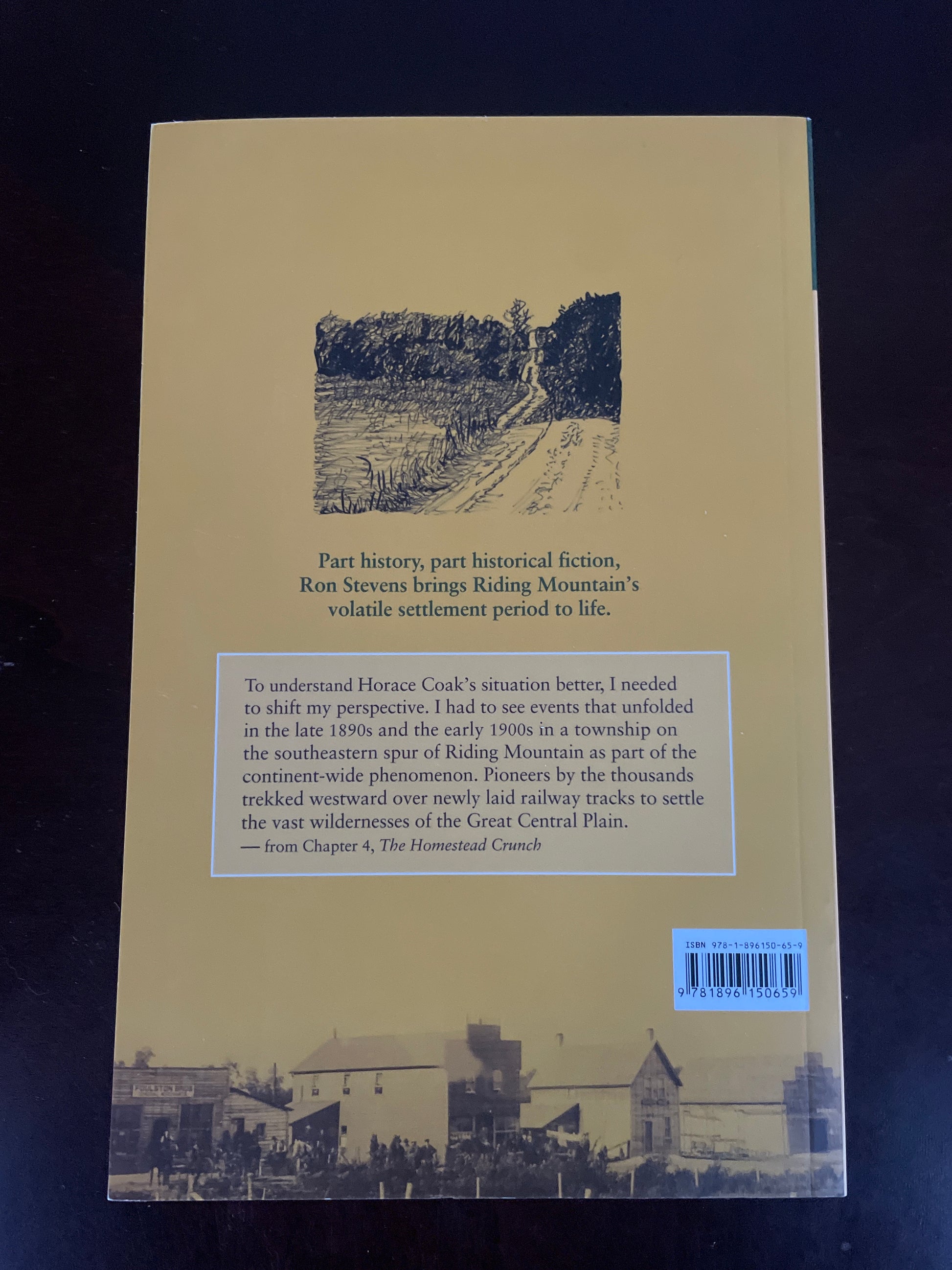 INSCRIPTION FROM RON STEVENS on title page; As New condition; Part history, part historical fiction, Ron Stevens brings Riding Mountain's volatile settlement period to life. A look at the events that unfolded in the late 1890s and early 1900s in a township on the southeaster spur of Riding Mountain as part of the continent-wide phenomenon. Pioneers by the thousands trekked westward over newly laid railway tracks to settle the vast wildernesses of the Great Central Plain.