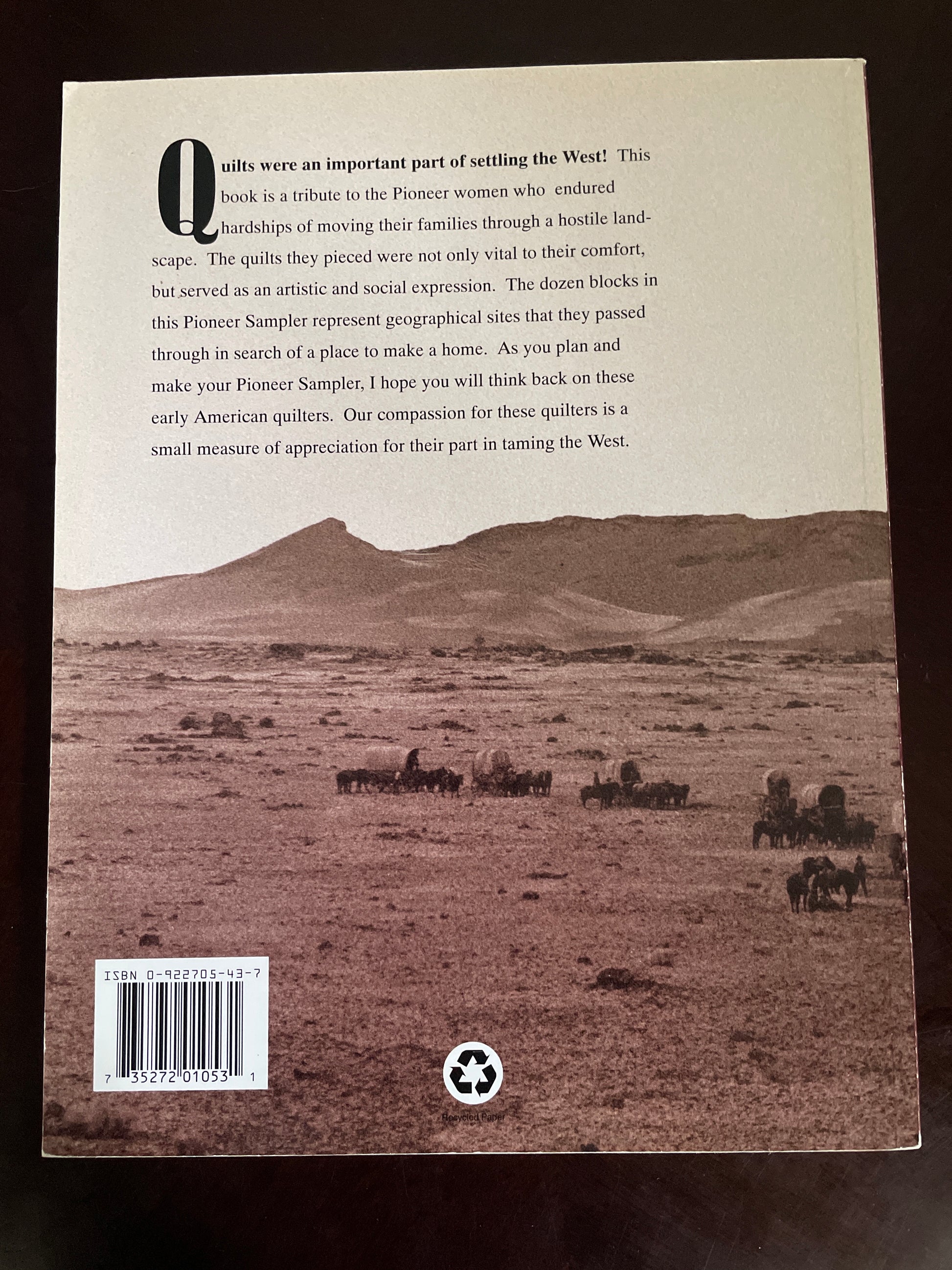 Quilt Block Party Series Five; Clean, tight, unmarked; some wear along spine edge; otherwise very minimal wear; This book is a tribute to the Pioneer women who endured hardships of moving their families through a hostile landscape. The dozen blocks in the Pioneer Sampler represent geographical sites that they passed through in search of a place to make a home. As you plan and make your Pioneer Sampler, the author hopes you will think back on these early American quilters.