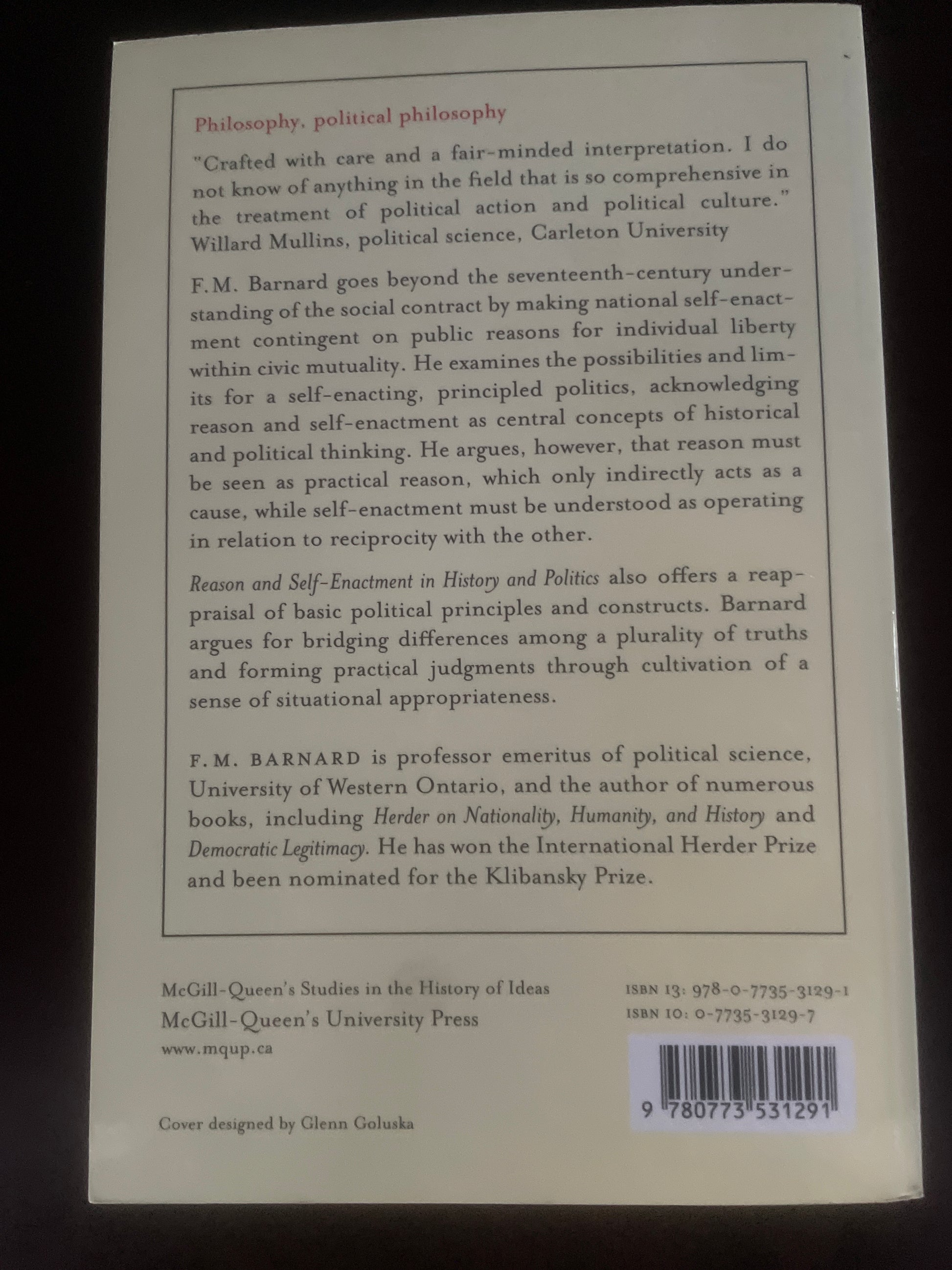 Reason and Self-Enactment in History and Politics: Themes and Voices of Modernity (Volume 40) (McGill-Queen's Studies in the Hist of Id) - Barnard, F. M.