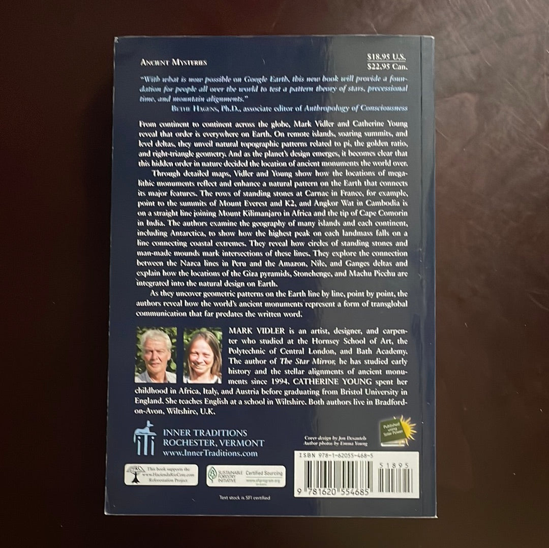 Clean, tight, unmarked; light wear to inside upper back corner; otherwise absolute minimal wear; appears unread; From continent to continent across the globe, Vidler and Young reveal that order is everywhere on Earth. On remote islands, soaring summits, and level deltas, they unveil natural topographic patterns related to pi, the golden ratio, and right-triangle geometry. And as the planet's design emerges, it becomes clear that this hidden order in nature decided the location of ancient monuments the world over. Through detailed maps, Vidler and Young show how the locations of megalithic monuments reflect and enhance a natural pattern on the Earth that connects its major features. As they uncover geometric patterns on the Earth line by line, point by point, the authors reveal how the world's ancient monuments represent a form of transglobal communication that far predates the written word.