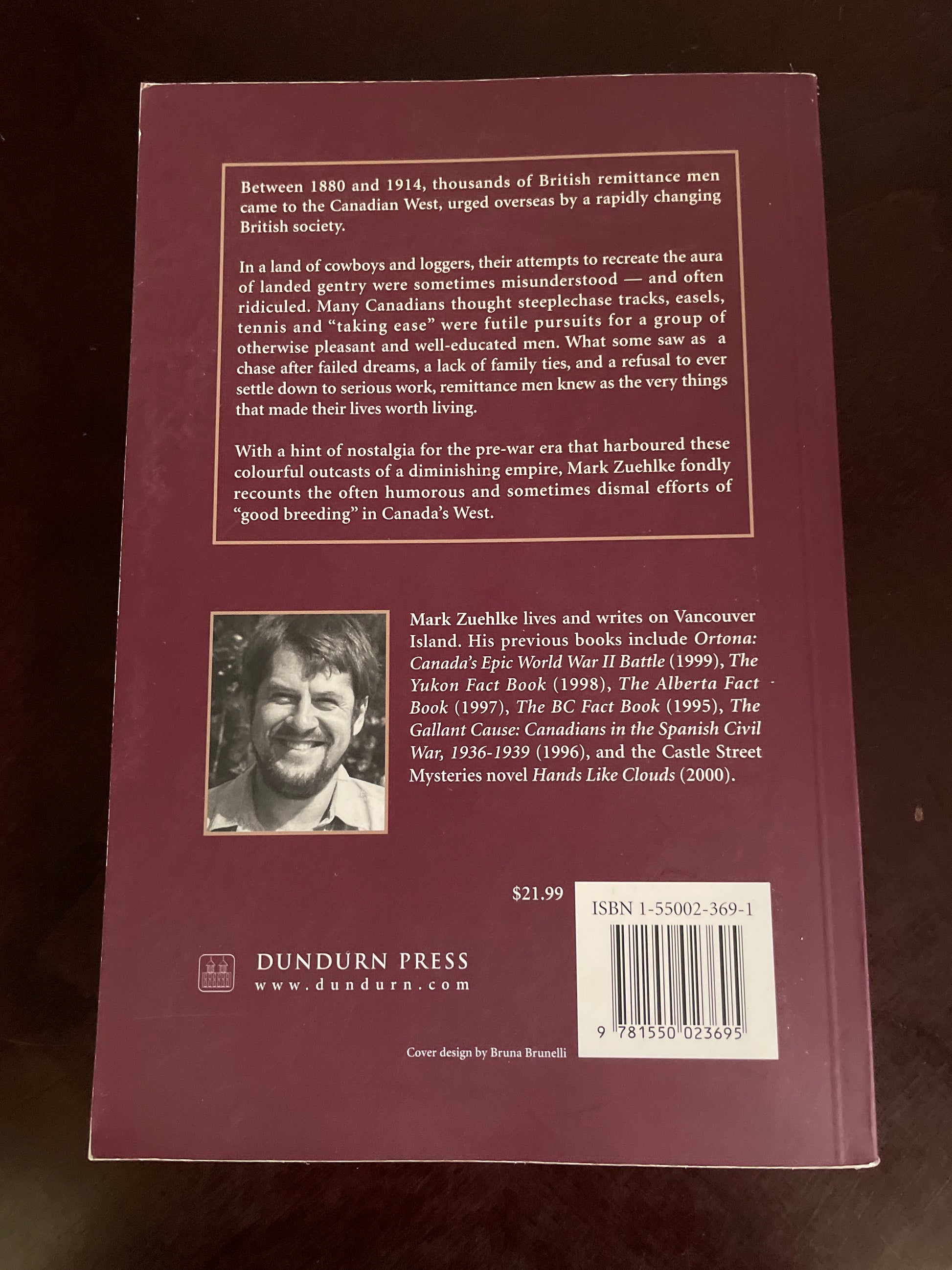 Clean, tight, unmarked; light crease to front cover just in from spine; date on copyright page; otherwise spine straight and uncreased; very minimal wear; Between 1880 and 1914, thousands of British remittance men came to the Canadian West, urged overseas by a rapidly changing British society. In a land of cowboys and loggers, their attempts to recreate the aura of landed gentry were sometimes misunderstood - and often ridiculed. Many Canadians thought steeplechase tracks, easels, tennis and "taking ease" were futile pursuits for a group of otherwise pleasant and well-educated men. With a hint of nostalgia for the pre-war era that harboured these colourful outcasts of a diminishing empire, Mark Zuehlke fondly recounts the often humorous and sometimes dismal efforts of "good breeding" in Canada's West.