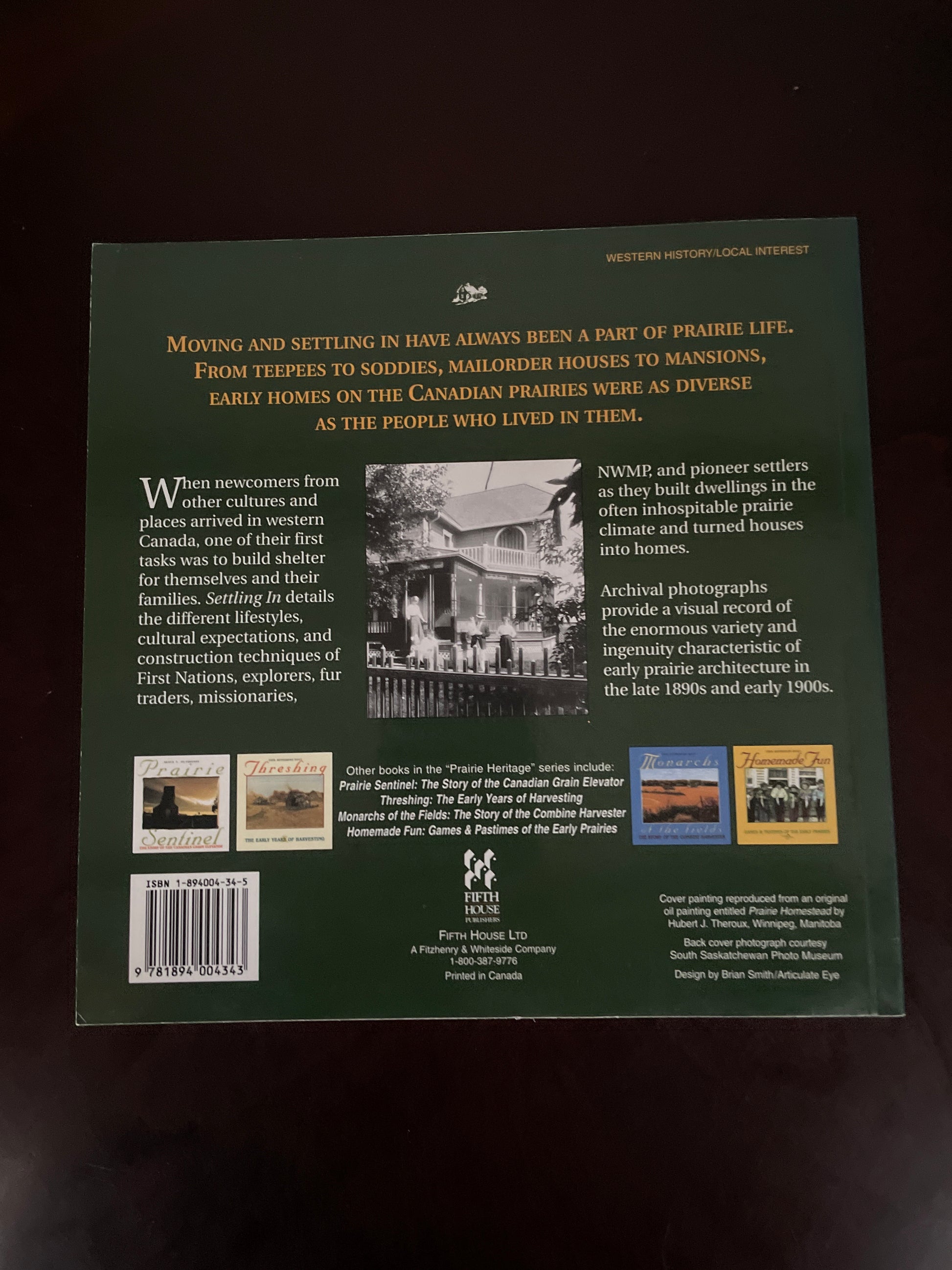 Clean, tight, unmarked; store stamp inside front cover; otherwise very minimal wear; Moving and settling in have always been a part of prairie life. From teepees to soddies, mailorder houses to mansions, early homes on the Canadian prairies were as diverse as the people who lived in them. Settling In details the different lifestyles, cultural expectations, and construction techniques of First Nations, explorers, fur traders, missionaries. NWMP, and pioneer settlers as they built dwellings in the often inhospitable prairie climate and turned houses into homes. Archival photographs provide a visual record of the enormous variety and ingenuity characteristic of early prairie architecture in the late 1890s and early 1900s.