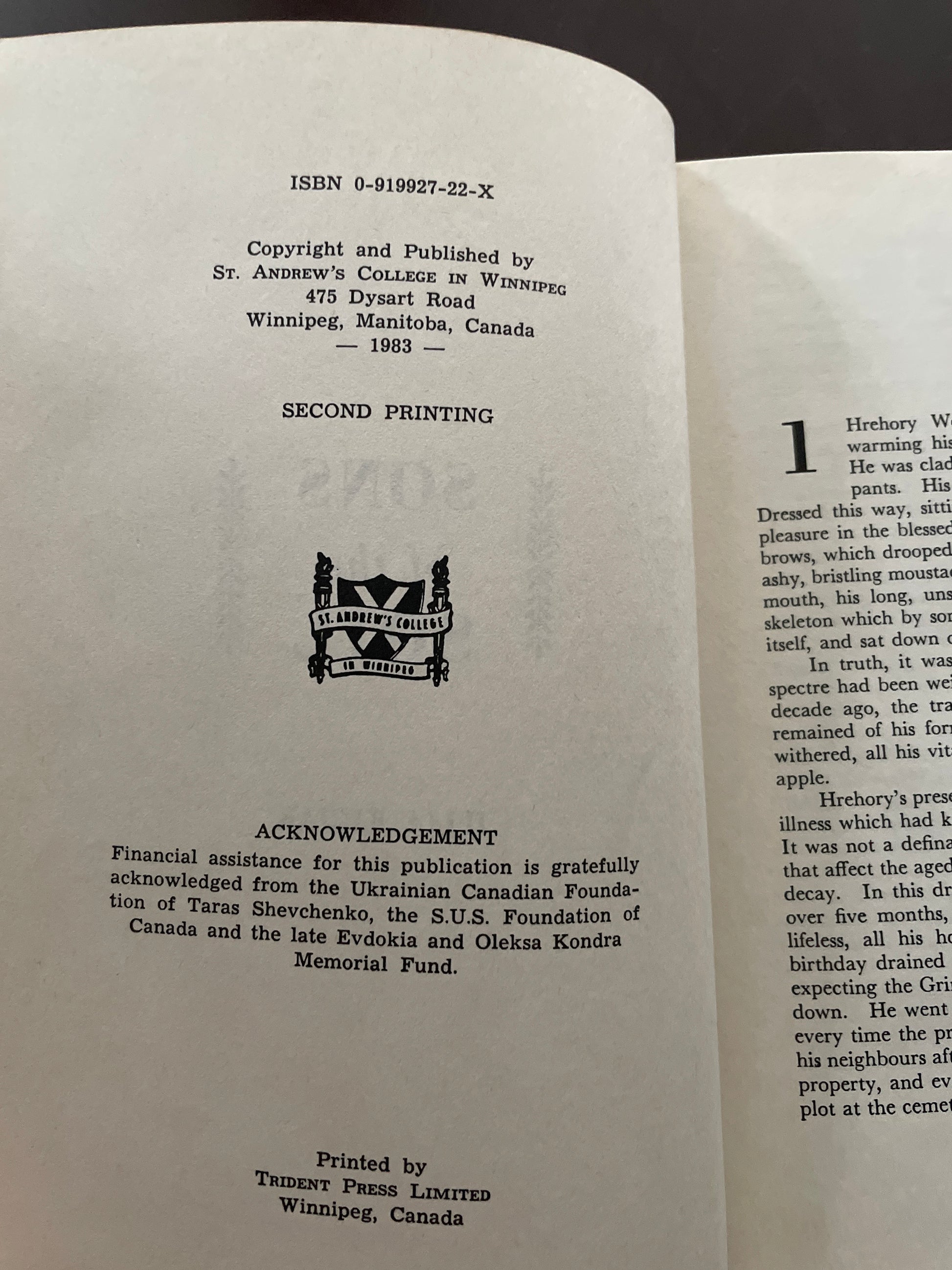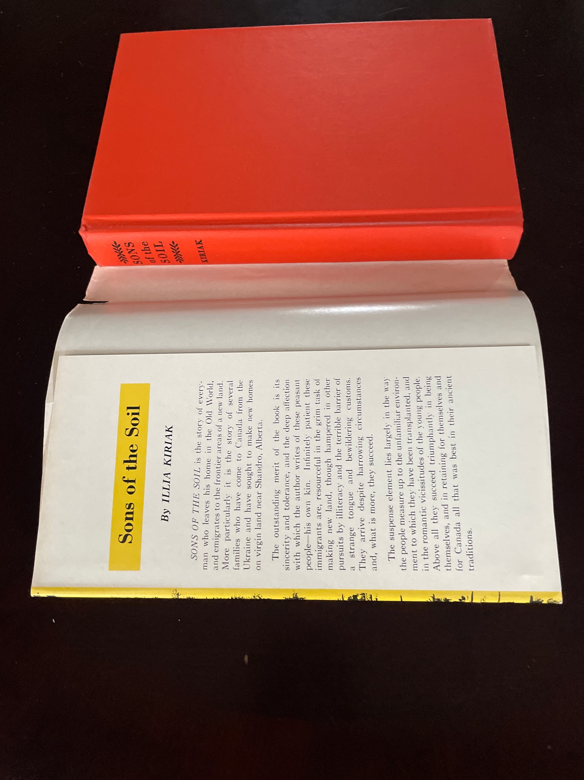 Clean, tight, unmarked; a few small tears to upper edge of dust jacket; wear to upper spine extreme; light age tanning; otherwise very minimal wear; dust jacket bright and unfaded; orange cloth covers with black titles on spine; This is the story of every man who leaves his home in the Old World, and emigrates to the frontier areas of a new land. More particularly it is the story of several families who have come to Canada from Ukraine and have sought to make new homes on virgin land near Shandro, AB. The suspense element lies largely in the way the people measure up to the unfamiliar environment to which they have been transplanted, and in the romantic vicissitudes of the young people. Above all they succeed triumphantly in being themselves, and in retaining for themselves and for Canada all that was best in their ancient traditions.
