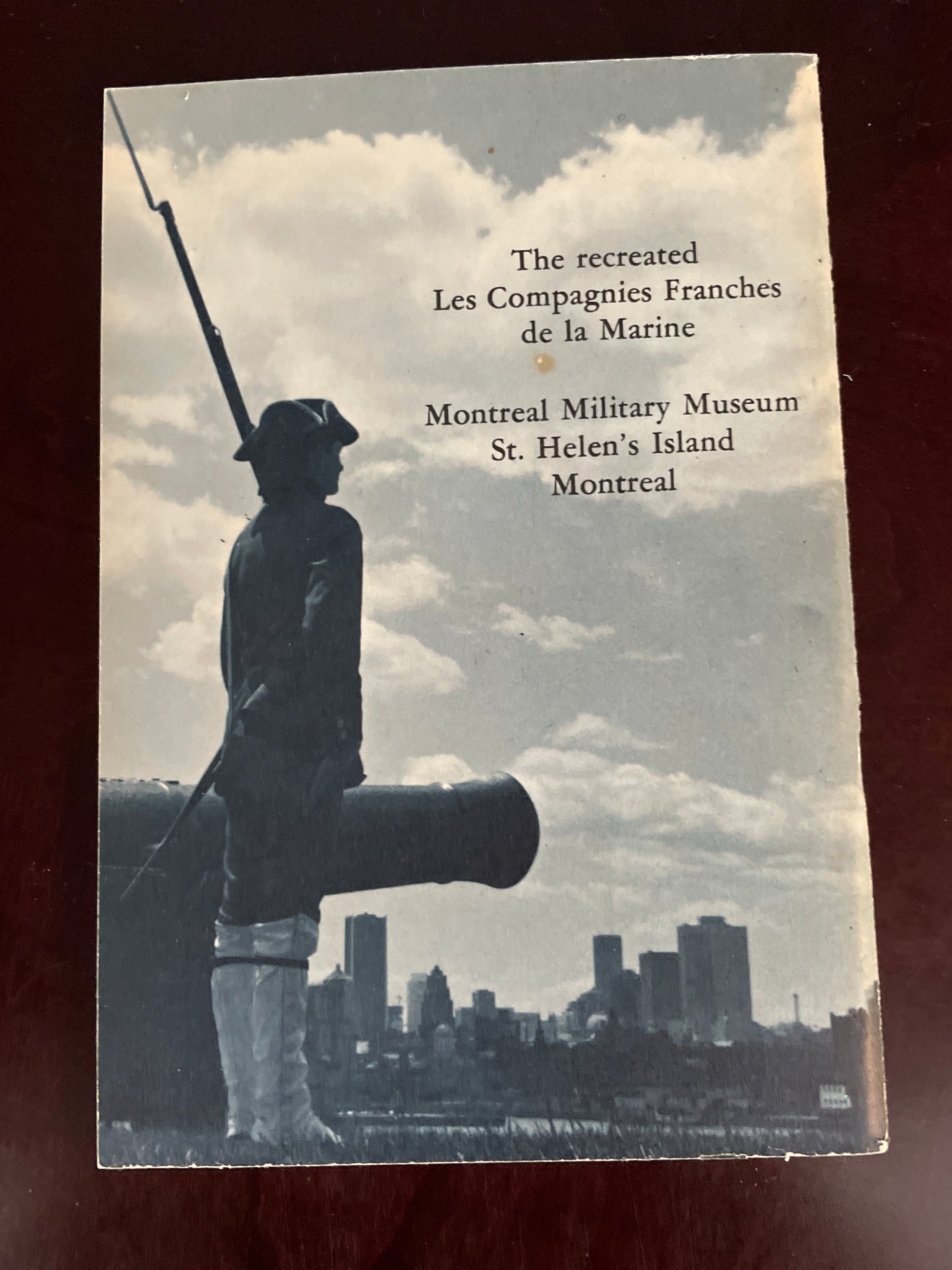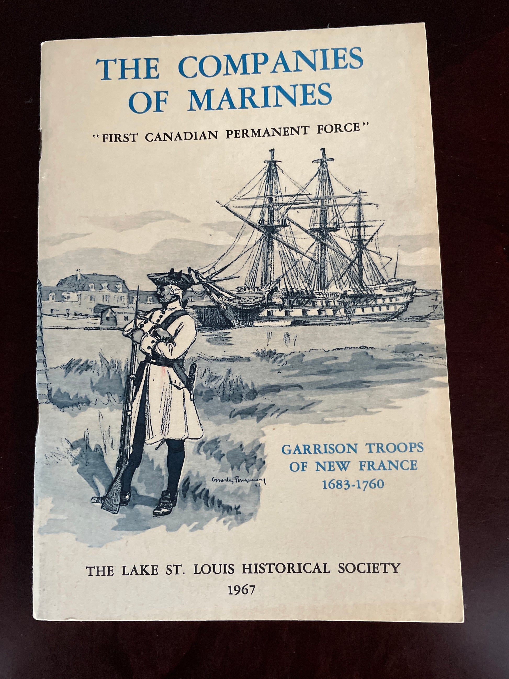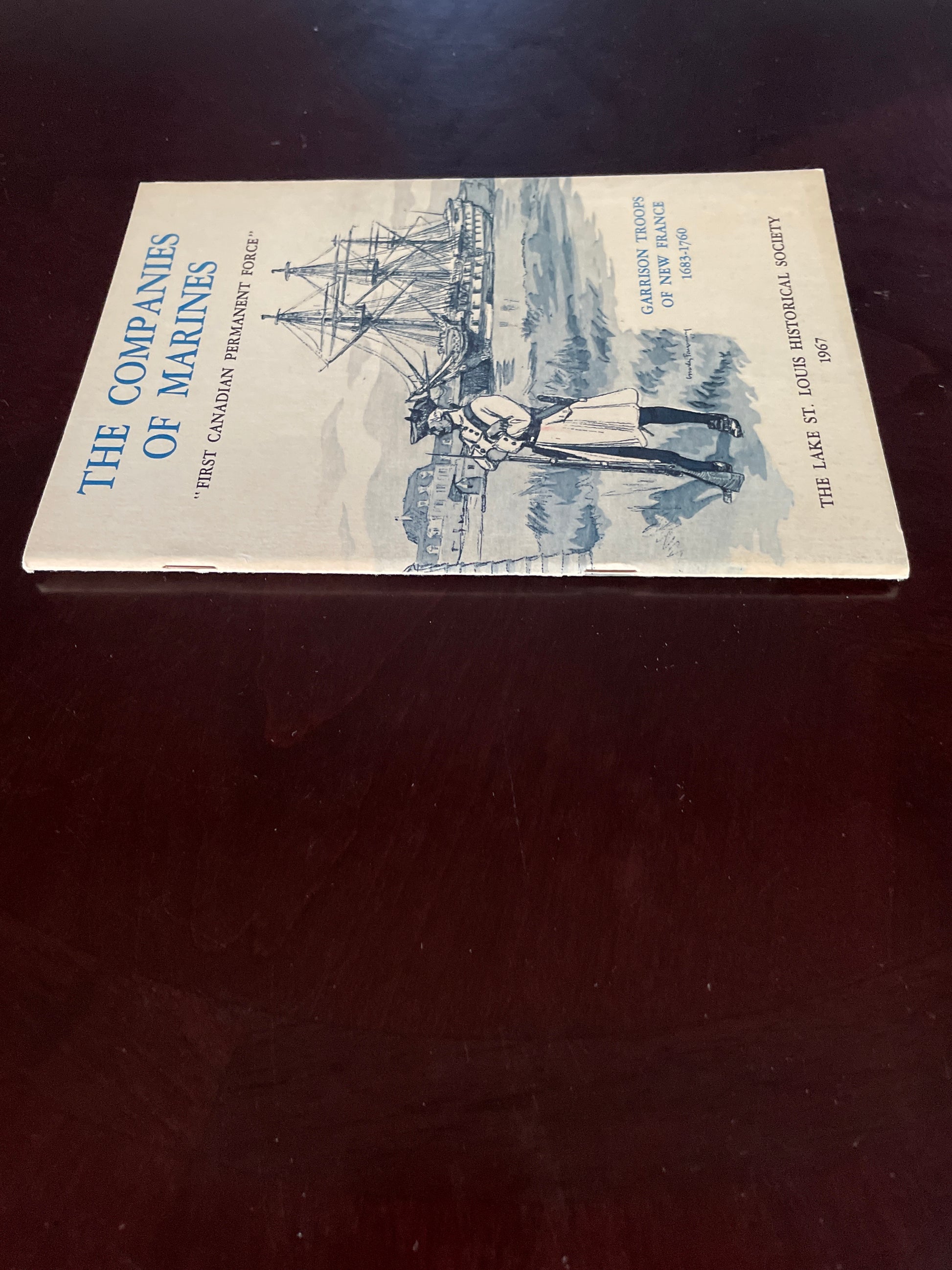 Clean, tight, unmarked; a couple of very small drop stains to back cover; otherwise very minimal wear; This booklet is intended to tell the story of the Marine Troops of France who served in North America and the Caribbean during the great period of French arms from the 1680s to the middle of the 1700s; they were on duty as the regular army stationed from fortress Louisbourg on the easternmost tip of Canada, in the chain of forts and towns stretching two thousand miles up the St. Lawrence to the Great Lakes, down to the Ohio-Mississippi rivers, terminating in New Orleans.