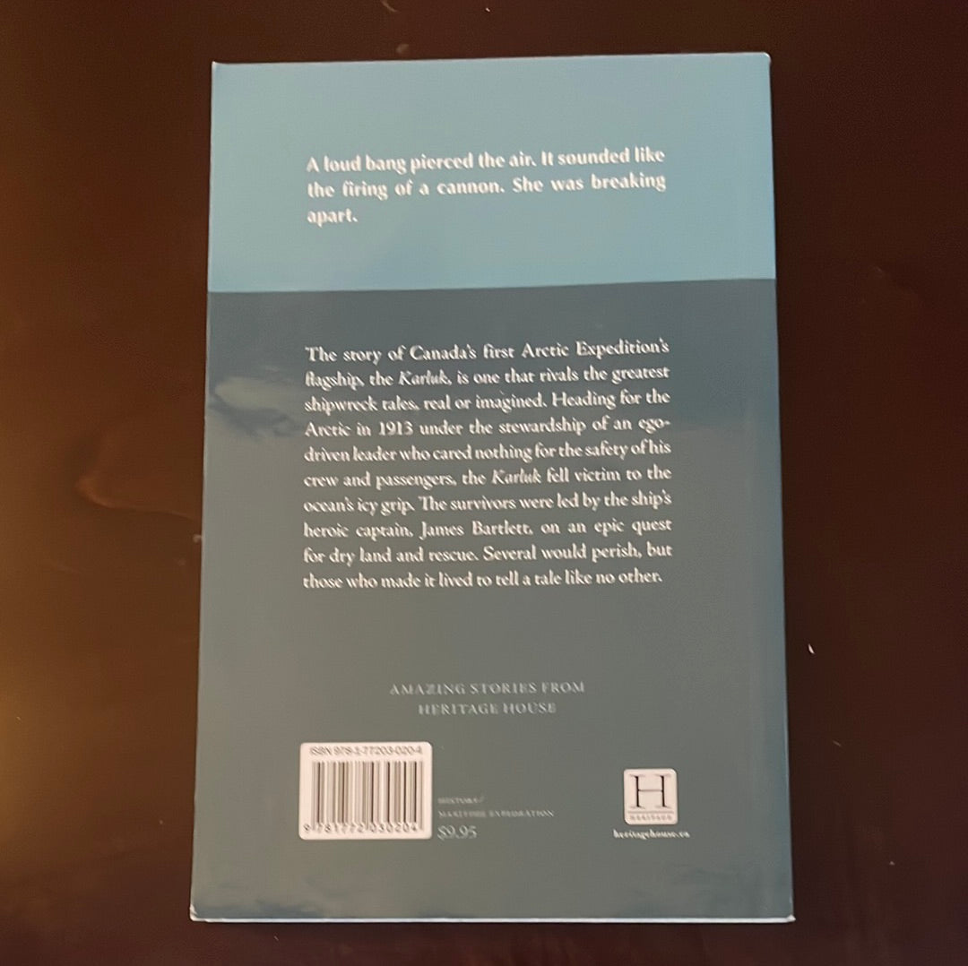 Clean, tight, unmarked; slight wear to inside corners; otherwise very minimal wear; The story of Canada's first Arctic Expedition's flagship, the Karluk, is one that rivals the greatest shipwreck tales, real or imagined. Heading for the Arctic in 1913 under the stewardship of an ego-driven leader who cared nothing for the safety of his crew and passengers, the Karluk fell victim to the ocean's icy grip. The survivors were led by the ship's heroic captain, James Bartlett, on an epic quest for dry land and rescue. Several would perish, but those who made it lived to tell a tale like no other.