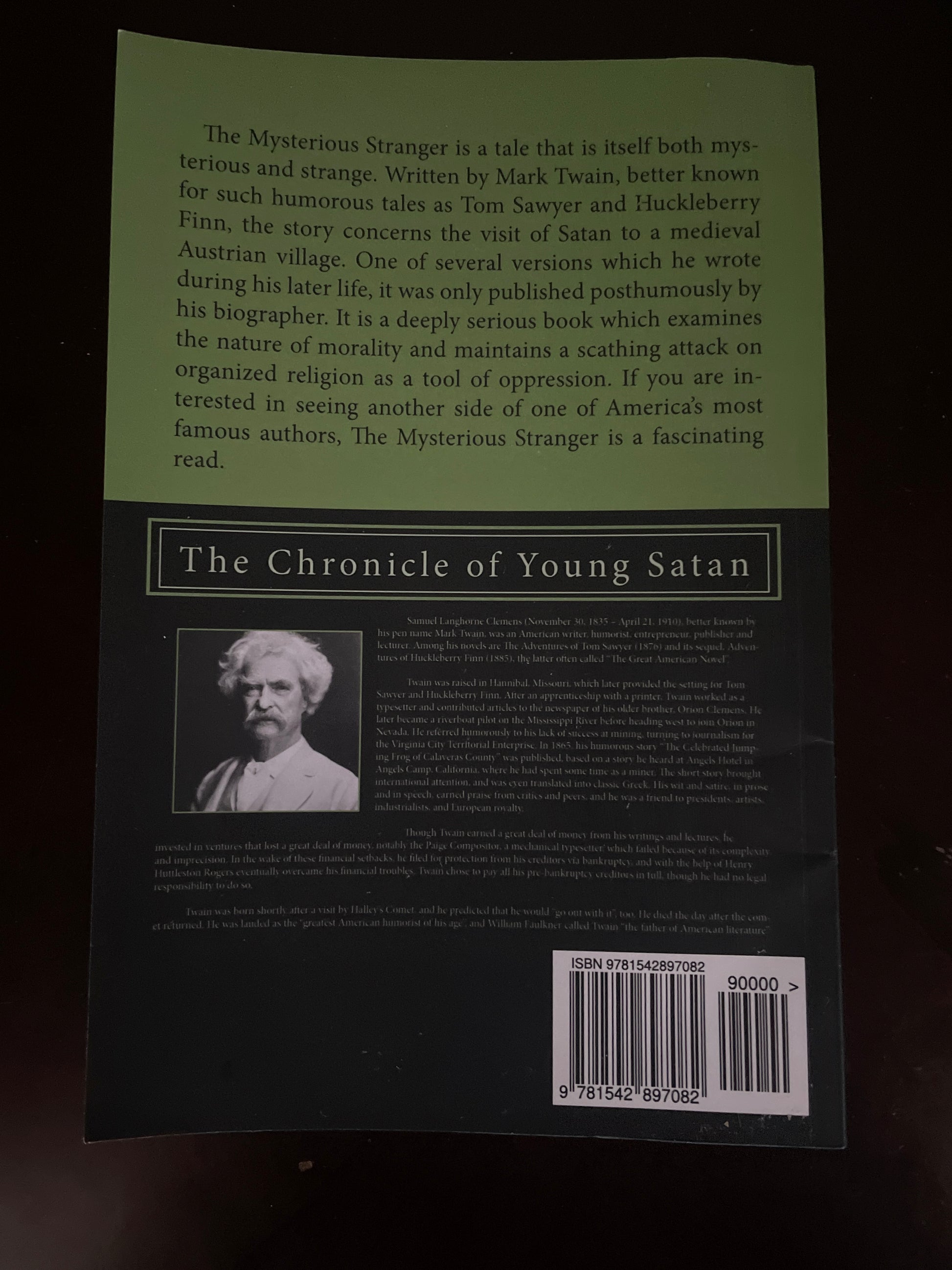 Clean, tight, unmarked; absolute minimal wear; appears unread; The Mysterious Stranger is a tale that is itself both mysterious and strange. The story concerns the visit of Satan to a medieval Austrian village. One of several versions which he wrote during his later life, it was only published posthumously by his biography. It is a deeply serious book which examines the nature of morality and maintains a scathing attack on organized religion as a tool of oppression. If you are interested in seeing another side of one of America's most beloved authors, this is a fascinating read.