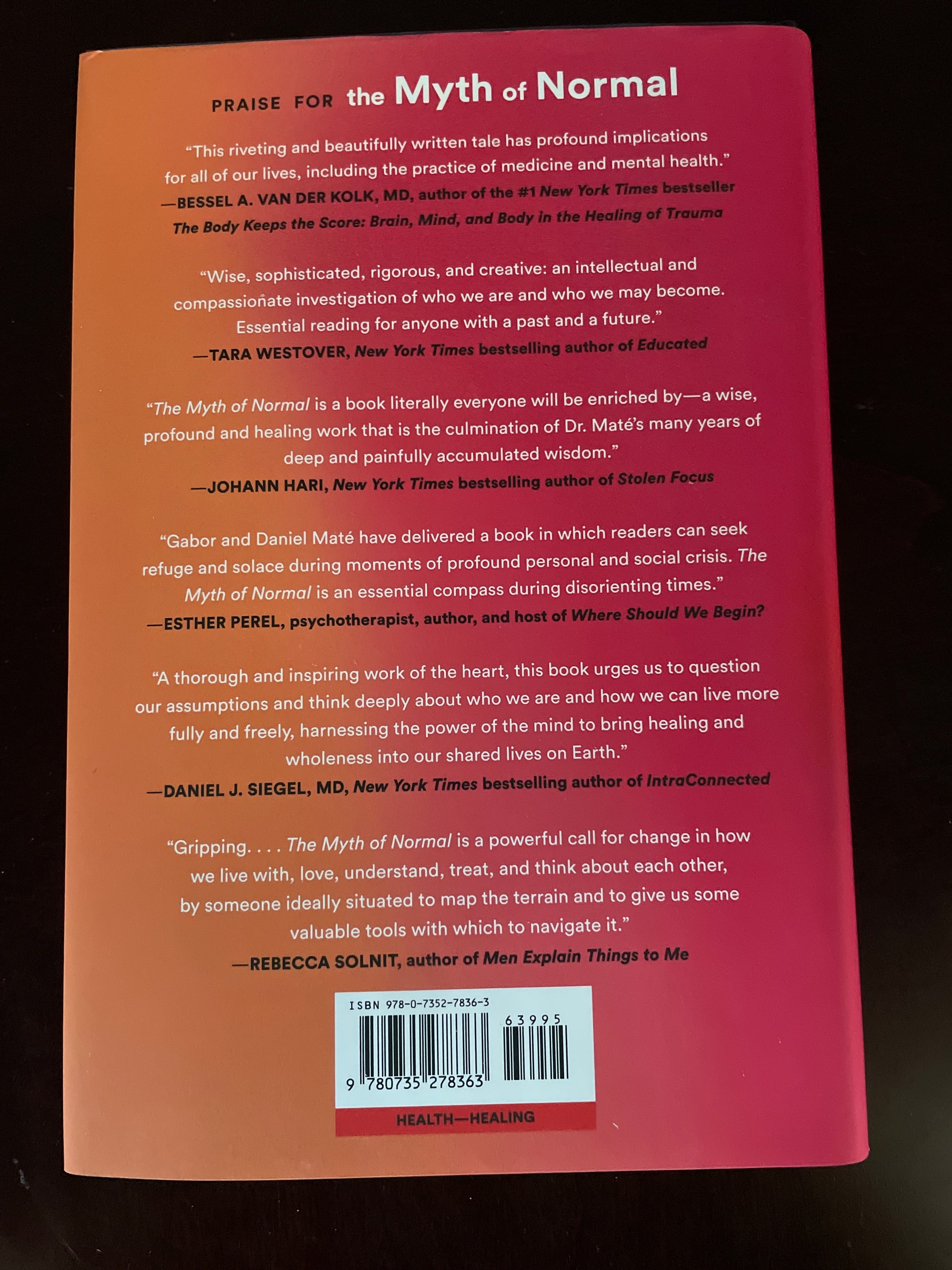 New Book; In this revolutionary book, Gabor Maté eloquently dissects how in Western countries that pride themselves on their health care systems, chronic illness and general ill health are on the rise. So what is really "normal" when it comes to health? for all our expertise and technological sophistication, Western medicine often fails to treat the whole person, ignoring how today's culture stresses the body, burdens the immune system, and undermines emotional balance. In this book, Maté brings his perspective to the great untangling of common myths about what makes us sick, connects the dots between the maladies of individuals and the declining soundness of society, and offers a compassionate guide for health and healing.