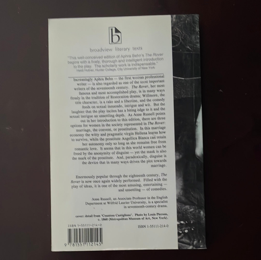 Clean, tight, unmarked; very minimal wear; "The Rover": marriage, the convent, or prostitution. In this marriage economy the witty and pragmatic virgin Hellena learns how to survive, the prostitute Angellica Bianca can retain her autonomy only so long as she remains free from romantic love. Enormously popular through the eighteenth century, "The Rover" is now once again widely performed.