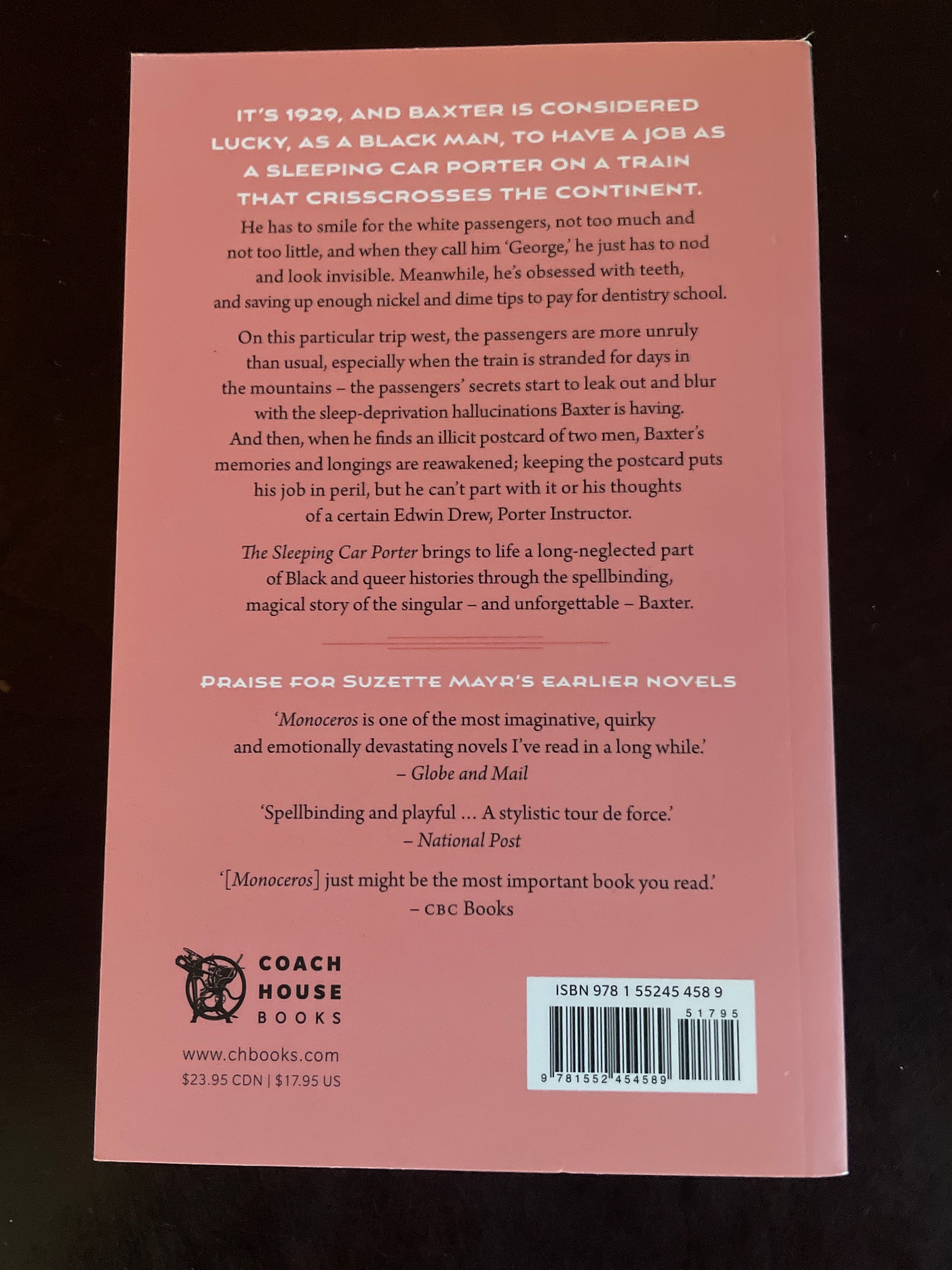 Clean, tight, unmarked; slight wear to upper inside page edges; otherwise spine straight and uncreased; absolute minimal wear; appears unread; It's 1929, and Baxter is considered lucky, as a black man, to have a job as a sleeping car porter on a train that crisscrosses the continent. He has to smile for the white passengers, not too much and not too little, and when they call him "George," he just has to nod and look invisible. Meanwhile, he's obsessed with teeth, and saving up enough nickel and dime tips to pay for dentistry school. This book brings to life a long-neglected part of Black and queer histories through the spellbinding, magical story of the singular - and unforgettable - Baxter.