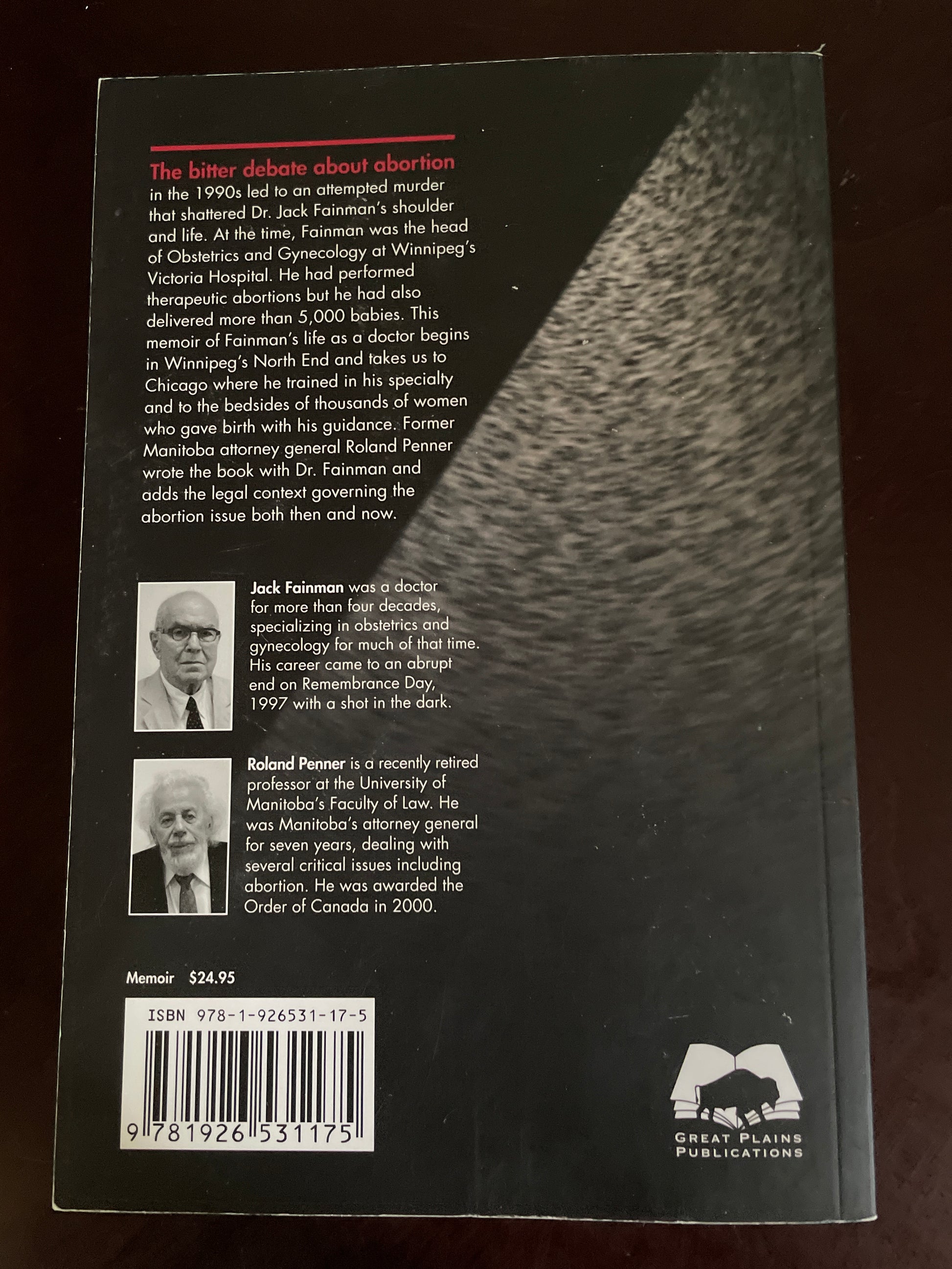 INSCRIPTION FROM ROLAND PENNER on half-title page; Clean, tight, unmarked; absolute minimal wear; appears unread The bitter debate about abortion in the 1990s led to an attempted murder that shattered Dr. Fainman's shoulder and life. He had performed therapeutic abortions but he had also delivered more than 5,000 babies. Roland Penner wrote the book with Dr. Fainman and adds the legal context governing the abortion issue both then and now.