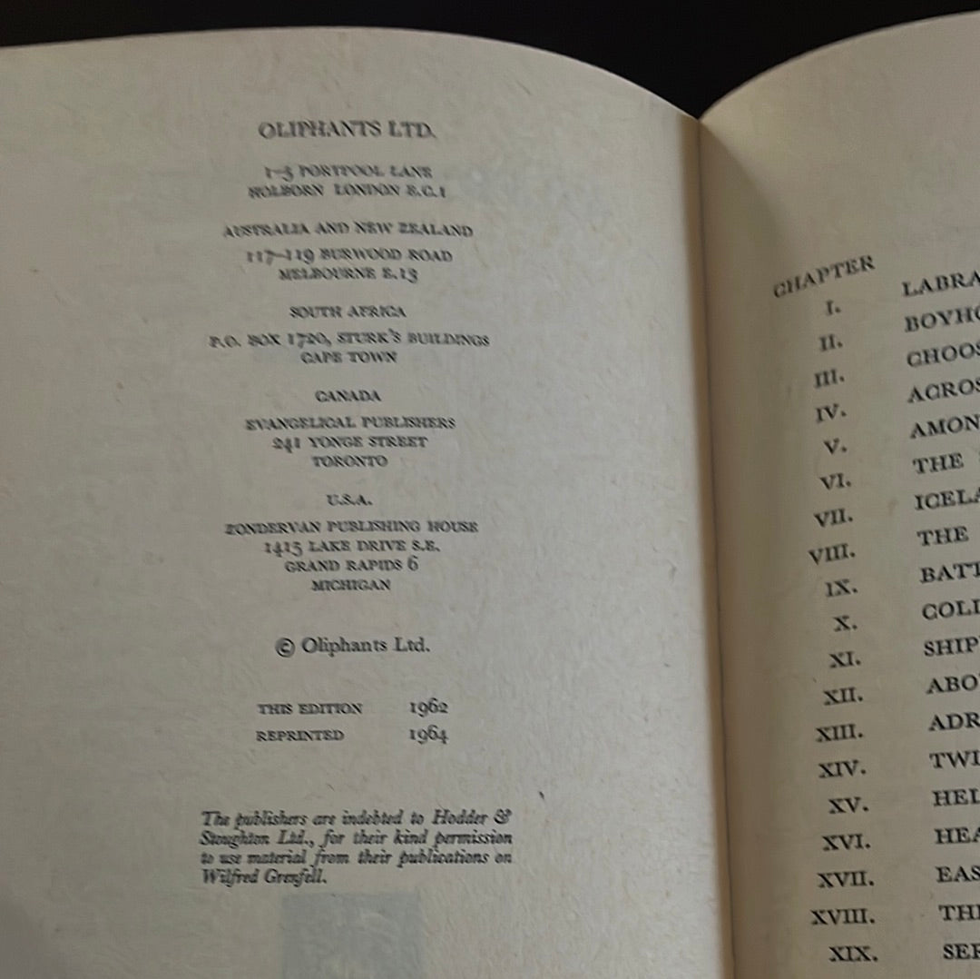 (Lakeland Series); Clean, tight, unmarked; gift inscription on ffep; pages are age tanned; very light wear to edges; covers unfaded with picture of Grenfell with his doctor's bag in winter parka and snowshoes looking out while he walks through a snowstorm; A juvenile biography of Wilfred Grenfell who was a British medical missionary to Newfoundland and Labrador