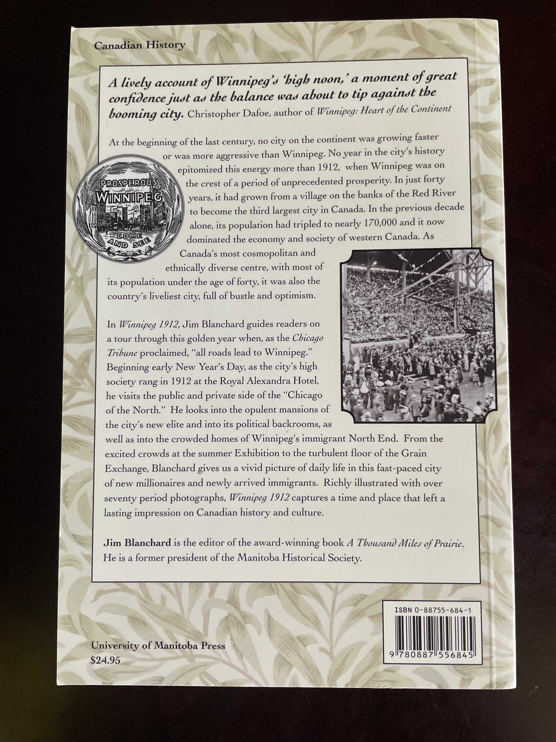 Clean, tight, unmarked; slight wear to inside corners; otherwise spine straight and uncreased; absolute minimal wear; At the beginning of the last century, no city on the continent was growing faster or was more aggressive than Winnipeg. No year in the city's history epitomized this energy more than 1912. Blanchard guides readers on a tour through this golden year when, as the Chicago Tribune proclaimed, "all roads lead to Winnipeg."